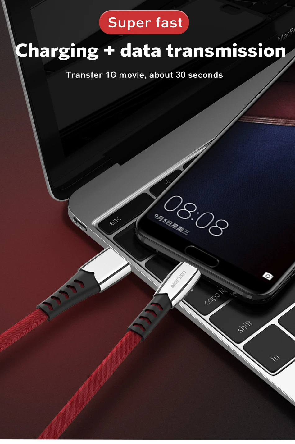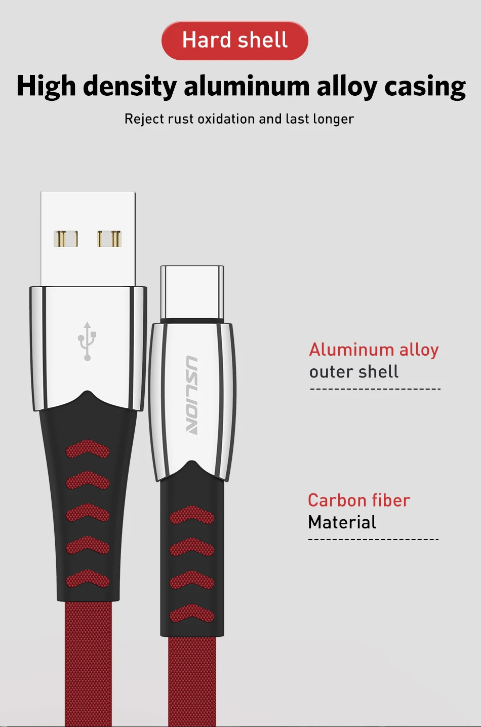 Comprar Cable USB tipo C de aleación USLION, Cable USB-C tipo C para Huawei P30 Lite Pro 3A, Cable de carga USB para samsung galaxy s22 s21 plus