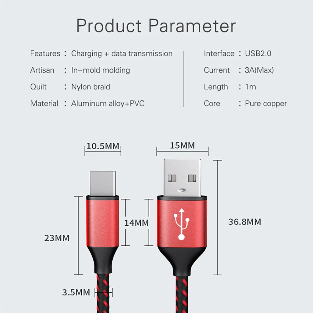 Comprar Cable USB tipo C de carga rápida, 0,25 m/1m, 3A, para Samsung, Xiaomi, Redmi, Huawei