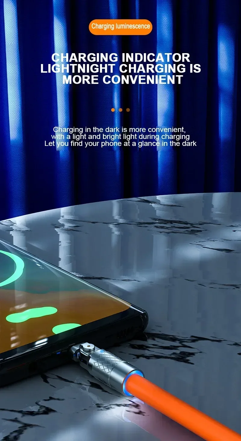 Cable USB tipo C de carga rápida de 120W 7A, Cable de codo con rotación de 180 grados para juego para Xiaomi Redmi Honor, cargador de teléfono, Cable USB C