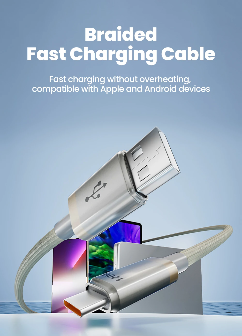 Cable USB A tipo C de carga rápida de 120W, Cable de 60W tipo C a USB C, Cable de datos USB C para teléfono móvil para IPhone 17 16 15 Pro Max Xiaomi