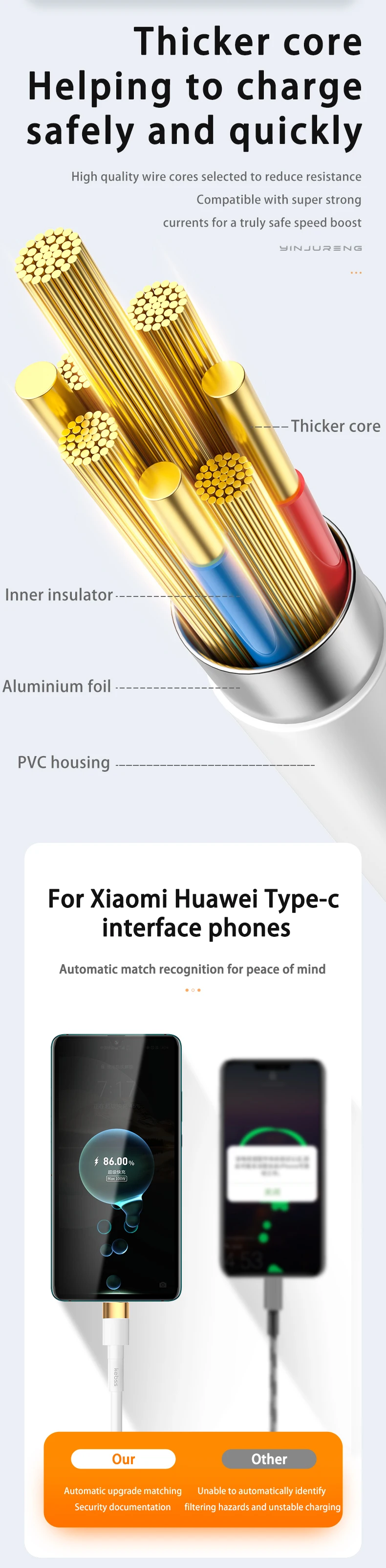 Comprar Cable USB tipo C de carga rápida, 65W, 6A, cargador de USB-C, Cable de datos para teléfonos móviles Xiaomi Redmi POCO Huawei Honor