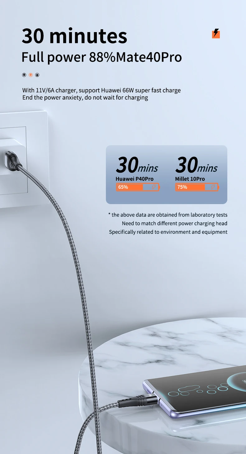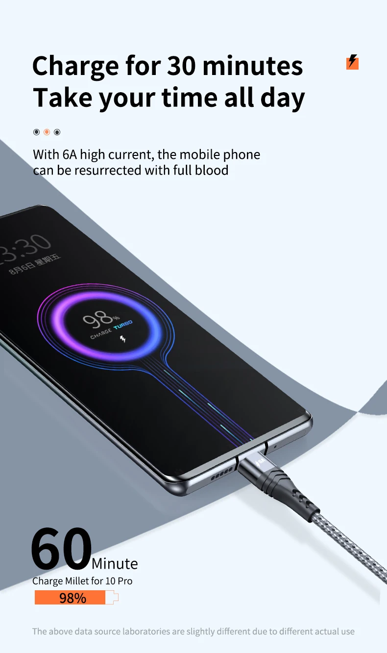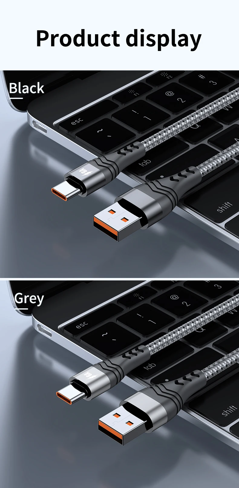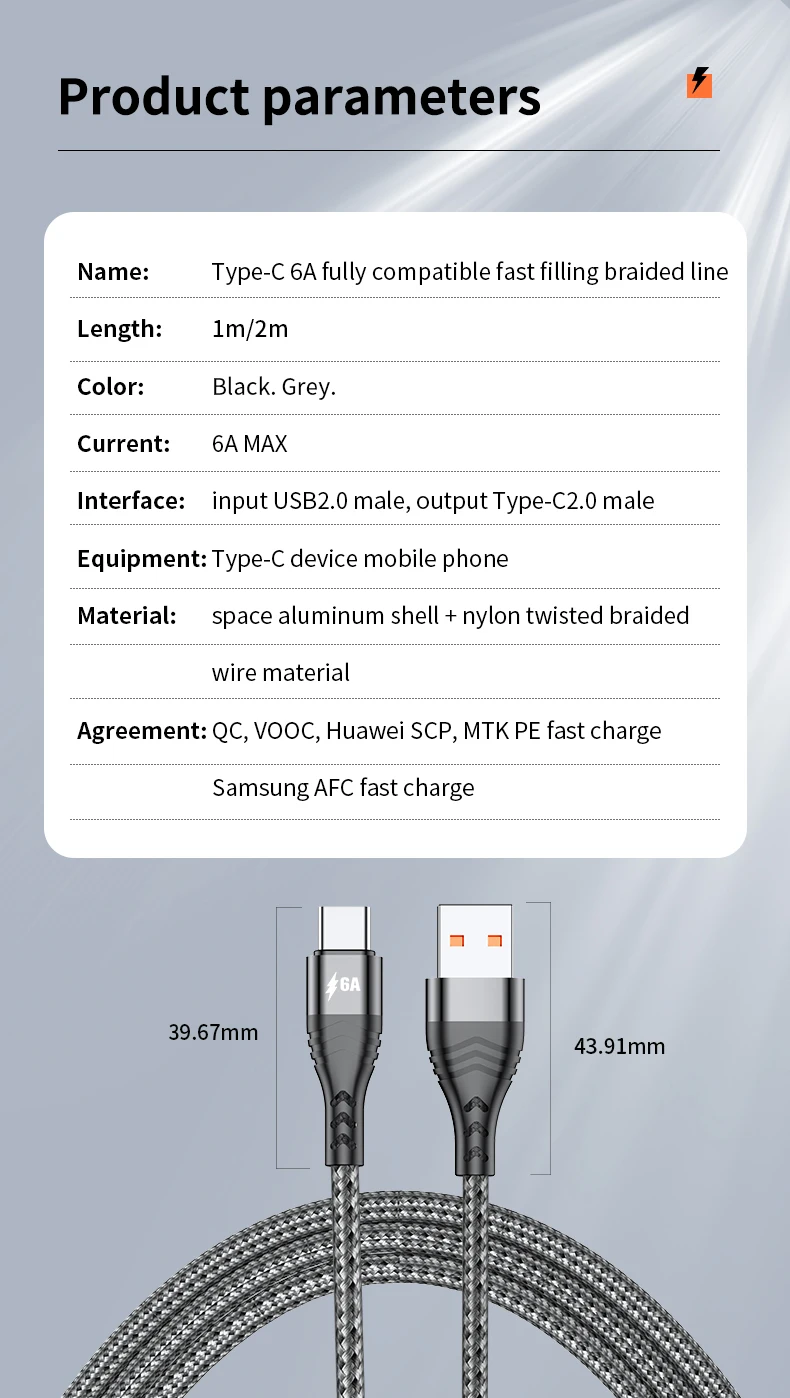 Comprar Cable USB tipo C de carga rápida, 6A, 66W, Cable de datos 6A, cables de cargador USB C para Samsung S21, Xiaomi, Huawei P40 Pro, 3M, 2M, 1M