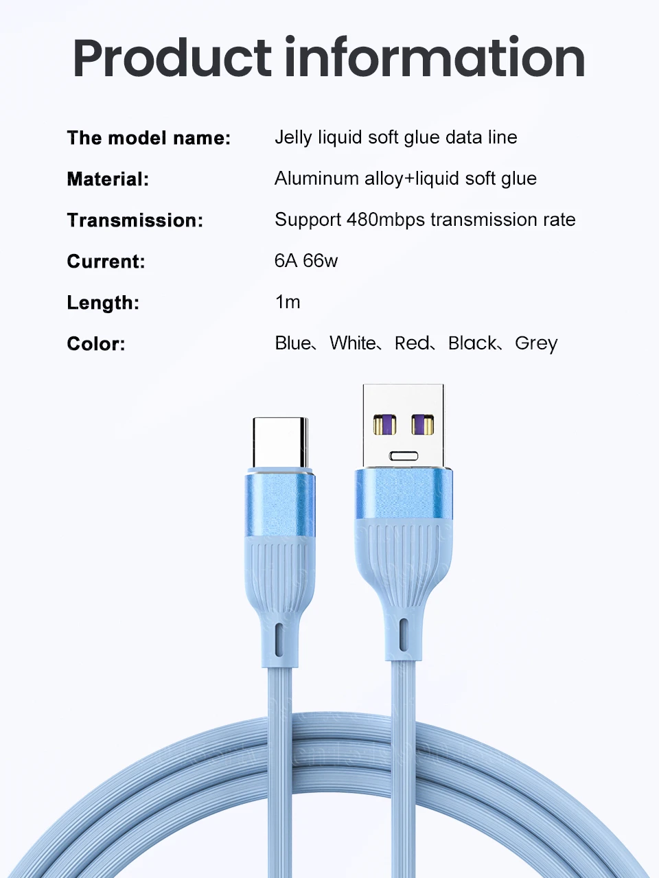 Comprar Cable USB tipo C de carga rápida 6A, 66W, P50 para Huawei, Mate40 Pro, cargador de USB-C, Cable de datos para Samsung y Xiaomi