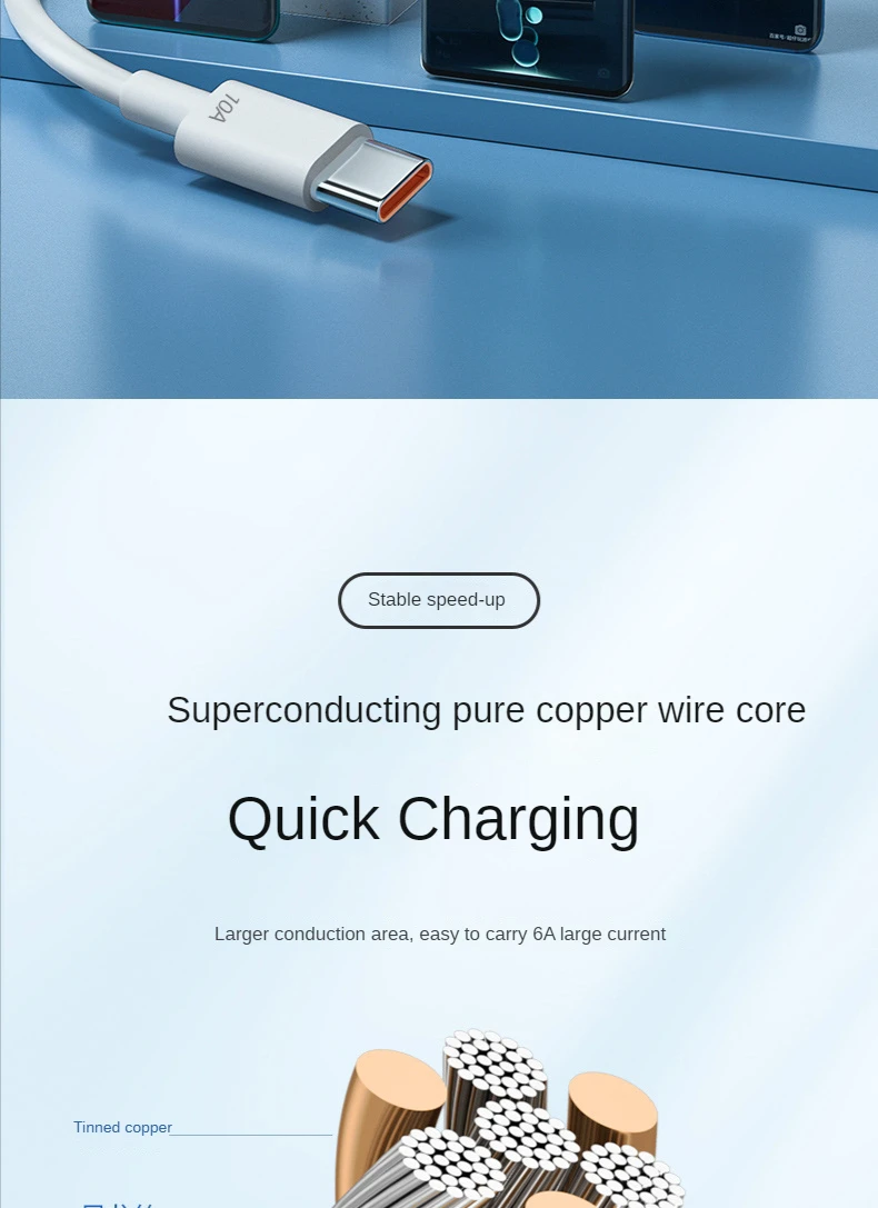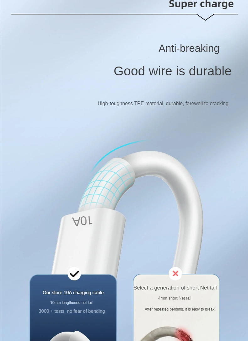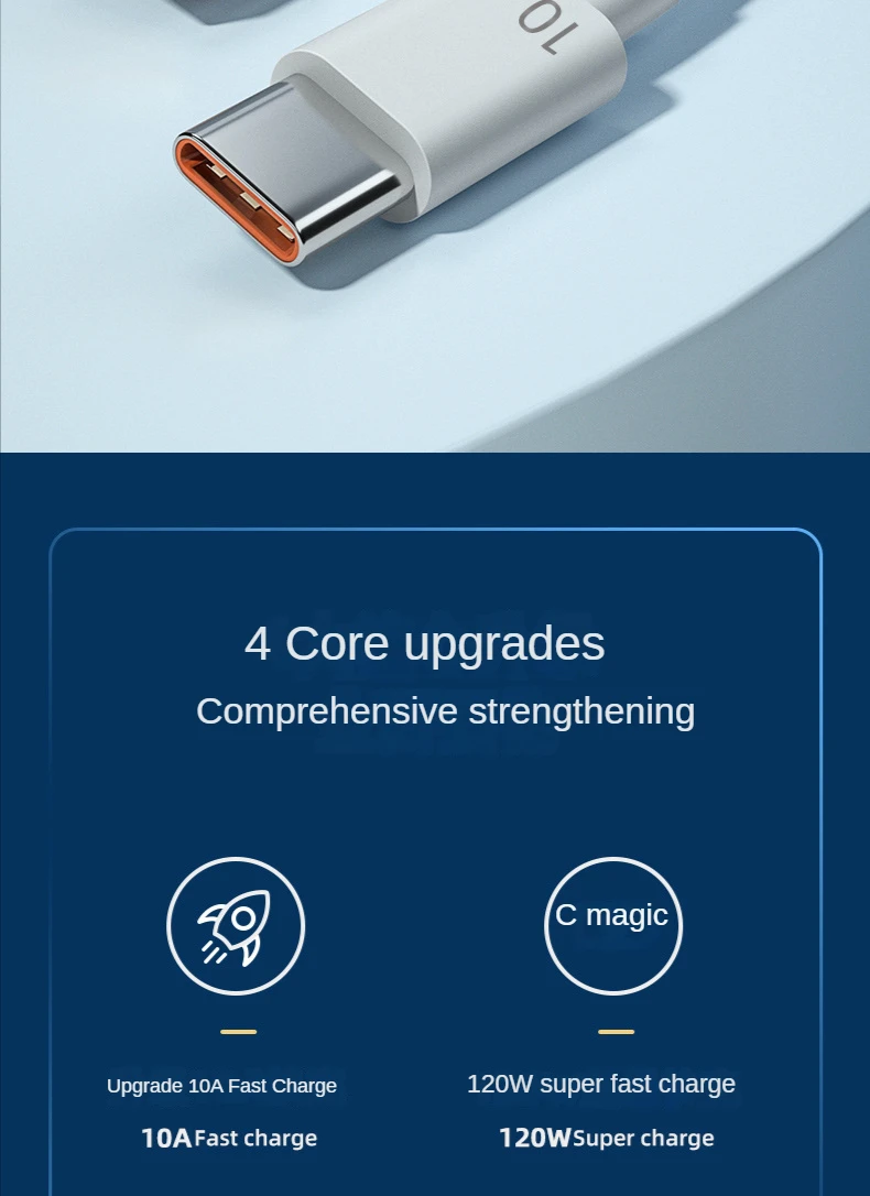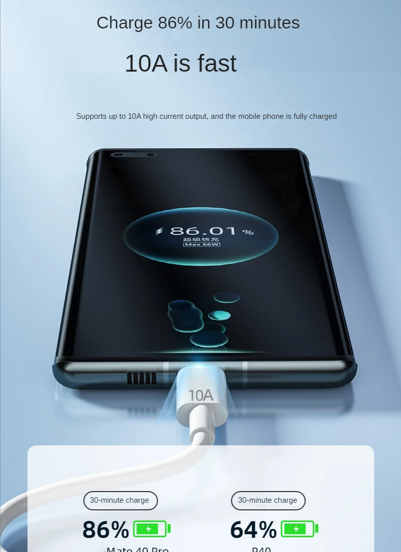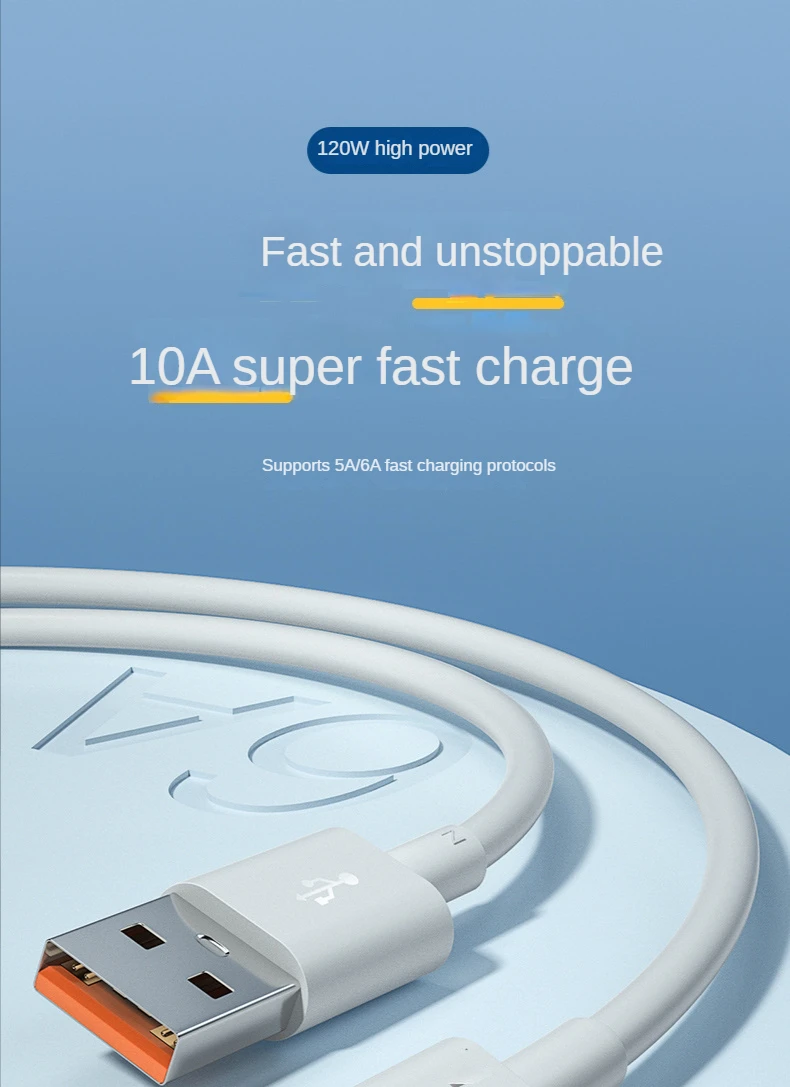 Comprar Cable USB tipo C de carga rápida, Cable de datos, 10A, 120W, para Huawei Mate 40, Xiaomi, Samsung Honor 50