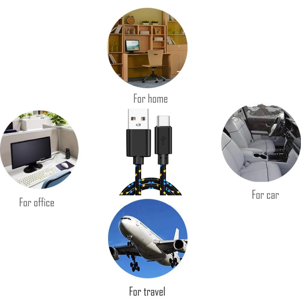 Cable USB tipo C trenzado de nailon. Longitud: 1m / 2M/3m