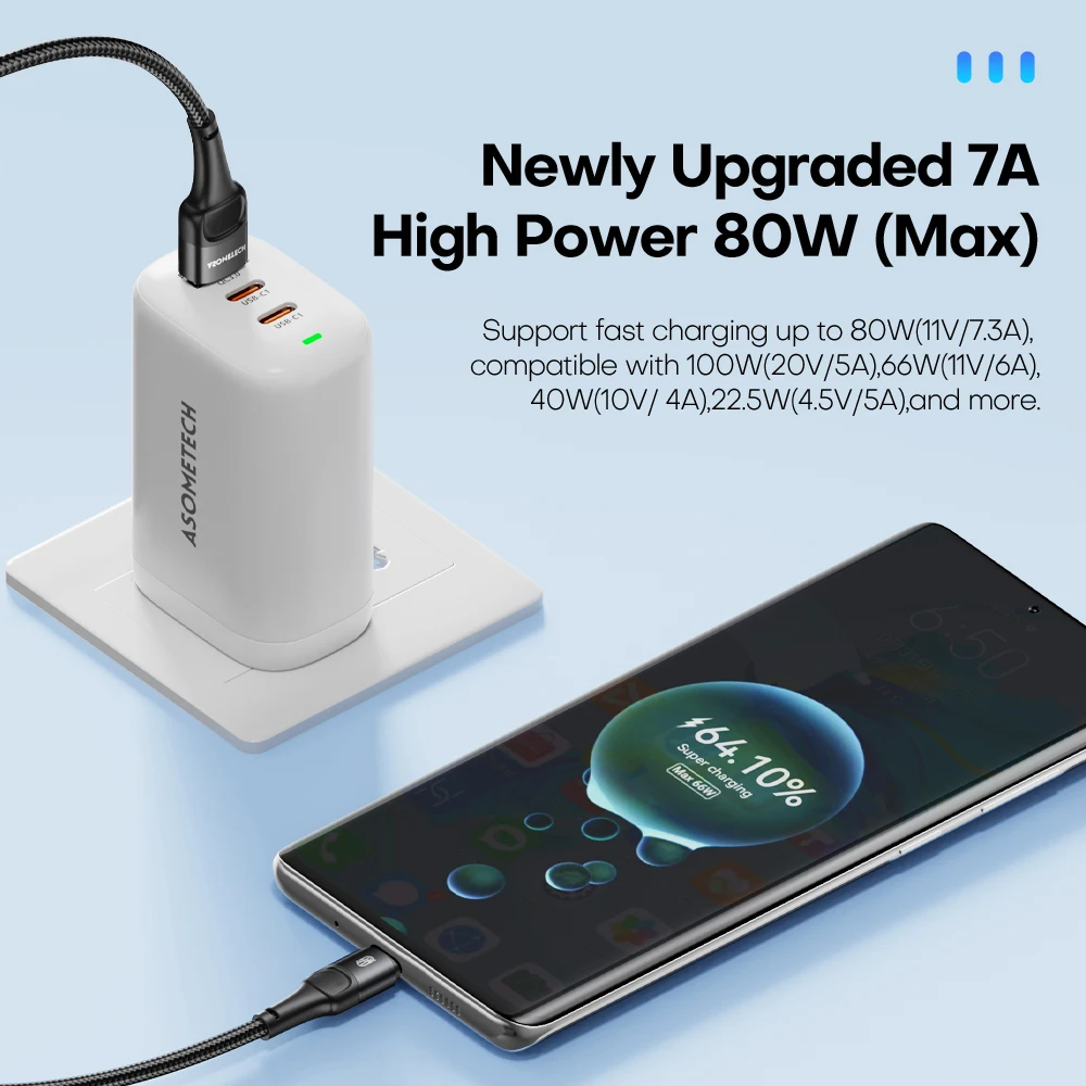 El cable USB A a USB C de ASOMETECH tiene un chip inteligente incorporado, que garantiza una carga segura de hasta 80W (11V/7.3A) de salida de potencia para su teléfono a toda velocidad.Sincronización rápida de datos de 480MbpsPotente y duradero Compatible100W (20V/5A) carga rápida máximaAdecuado para Huawei Nava 9 Pro , Nava 10 Pro