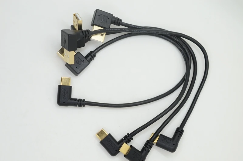 Conector macho de cable de carga y sincronización de datos USB 2,0 (tipo A) de ángulo izquierdo y derecho macho a USB3.1 (tipo C) chapado en oro