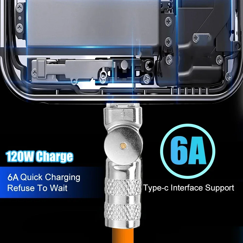 Comprar Cable USB tipo C de carga rápida, dispositivo giratorio de 120W, 6A, 180 °, para Samsung S22, S21, S20 Ultra, Huawei, Xiaomi, 12 LED