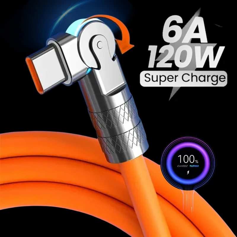 Comprar Cable USB tipo C de carga rápida, dispositivo giratorio de 120W, 6A, 180 °, para Samsung S22, S21, S20 Ultra, Huawei, Xiaomi, 12 LED