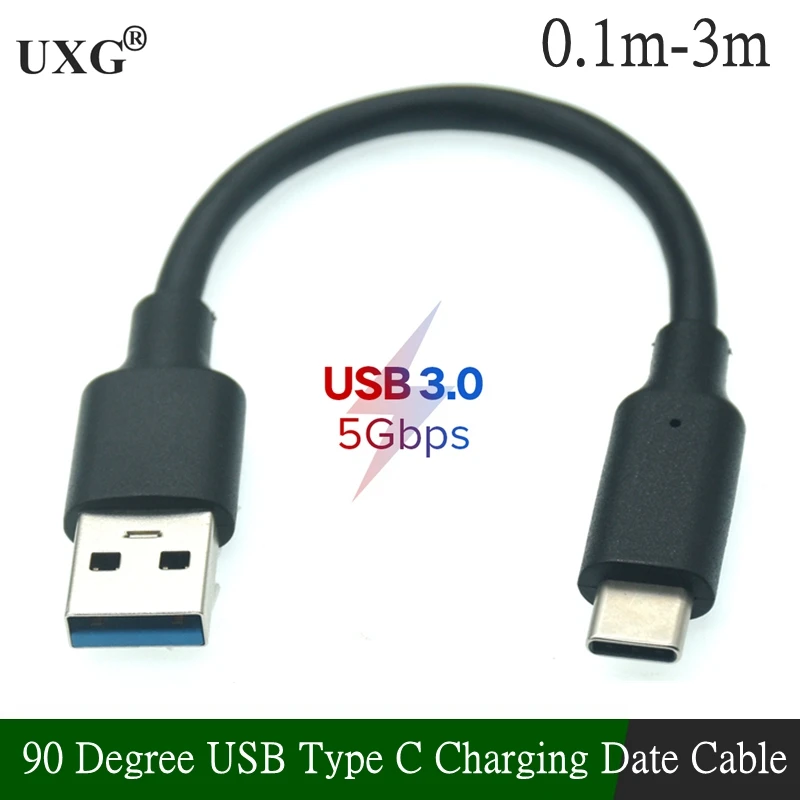 Estándar USB 3,0 Tipo-C cable de datos de doble curva computadora portátil teléfono móvil cable de carga de datos 1 metro