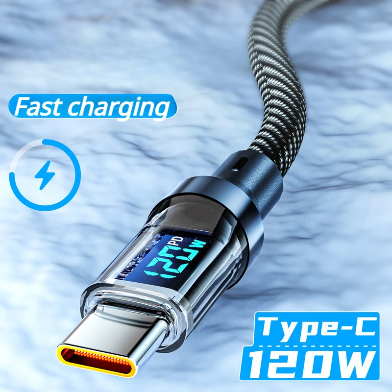Comprar Cable USB tipo C de carga rápida con pantalla Digital LED, Cable de datos de carga rápida para Samsung, Xiaomi, POCO Redmi, Huawei, 120W, nuevo
