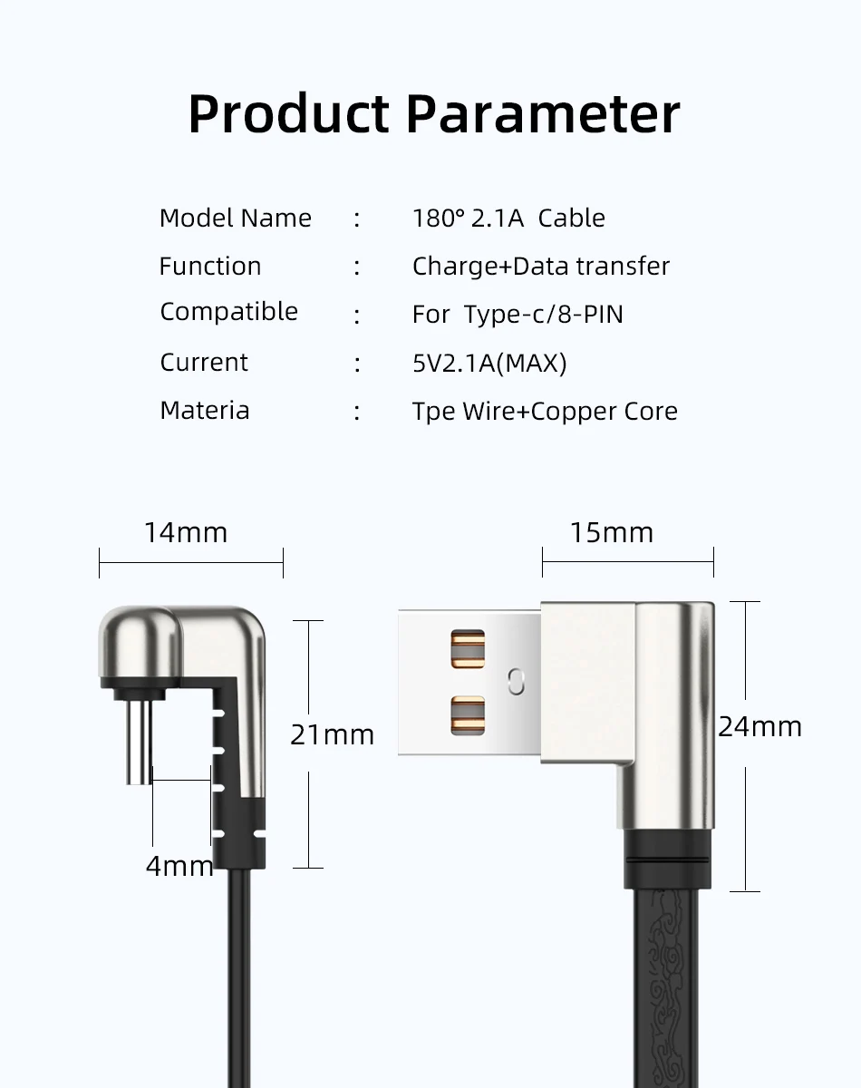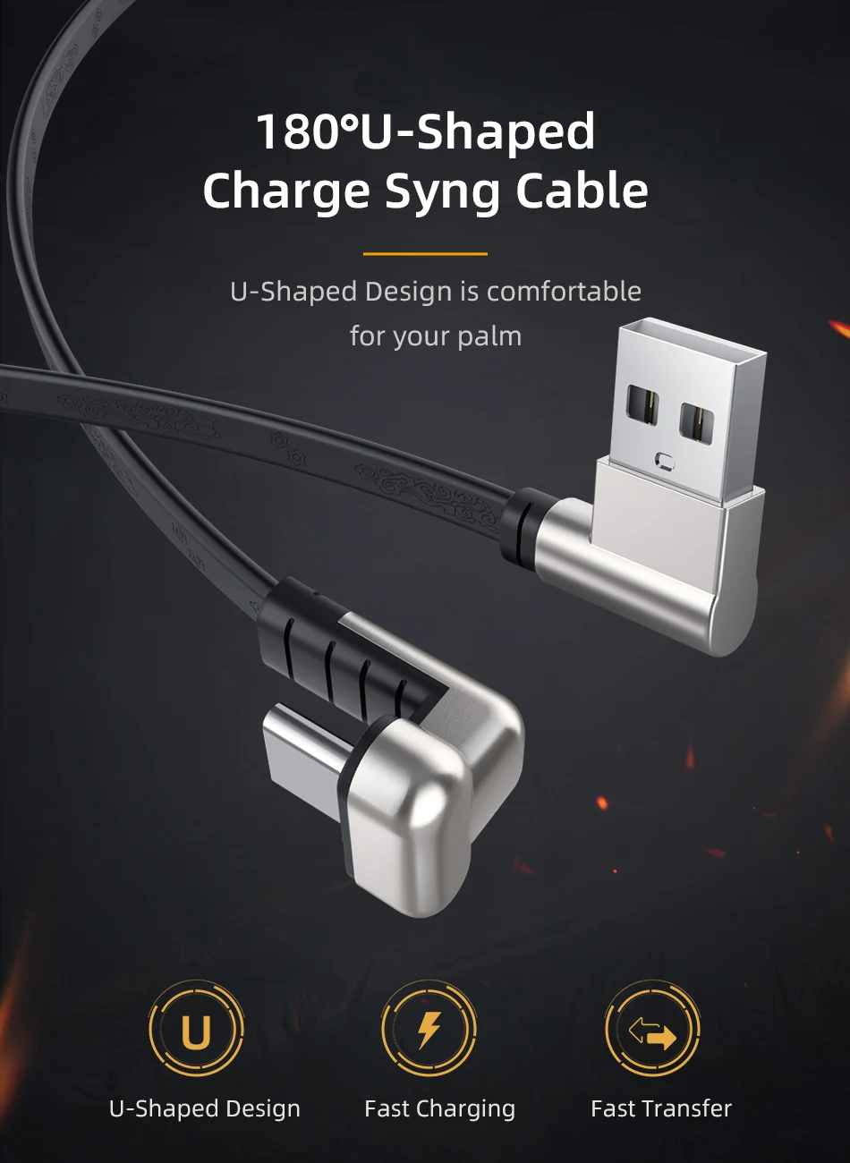 Comprar Cable USB tipo C de carga rápida para teléfono, accesorio de 180 grados para Xiaomi, Samsung, 2.1A, Huawei P40 Pro