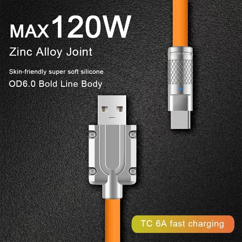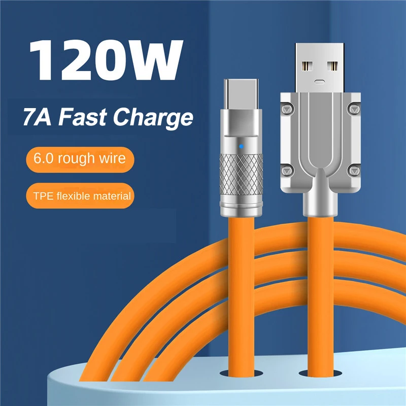 Comprar Cable USB tipo C de carga superrápida, cargador de datos de silicona líquida, 120W, 7A, para Xiaomi, Huawei, Samsung, POCO