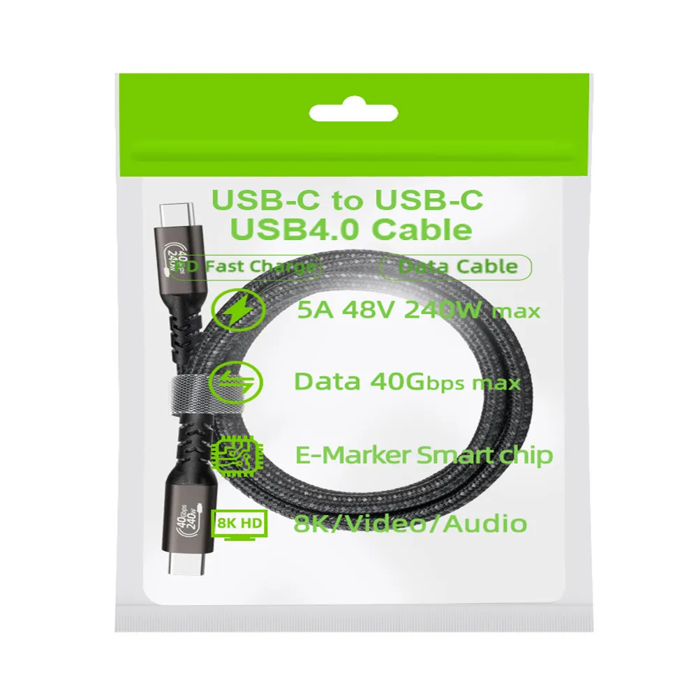 Cable USB 4,0 de 240W Compatible con Thunderbolt 4/3 40Gbps USB C 8K Cable de vídeo de características completas tipo C para M1 Macbook Pro Disco Duro Cable DE DATOS USB C