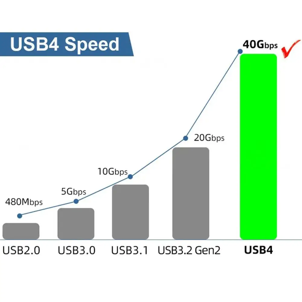 Transferencia de datos: 40Gbps (estándar USB4.0, compatible con Thunderbolt 4/Thunderbolt 3/USB3.2/3,1/3,0/2,0)