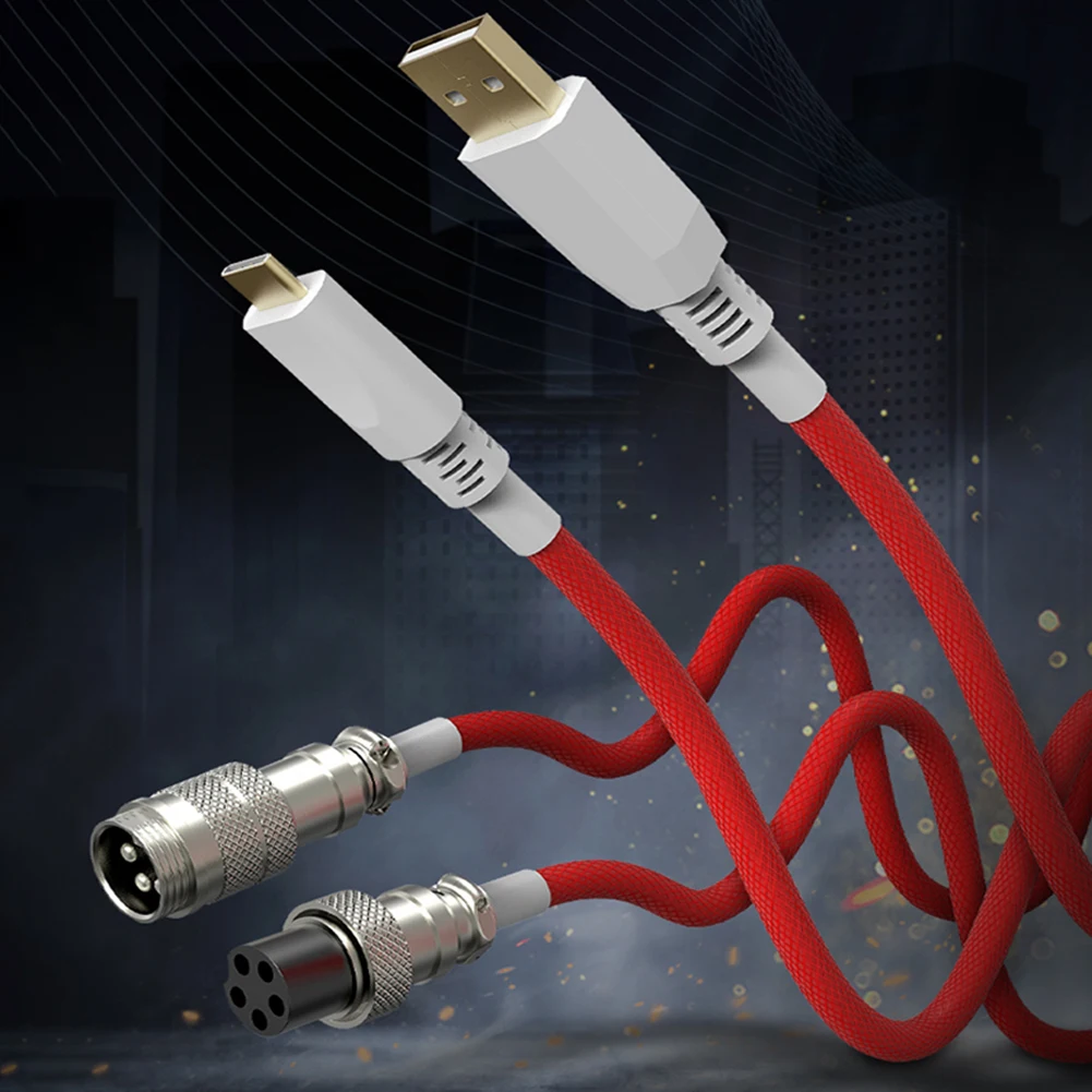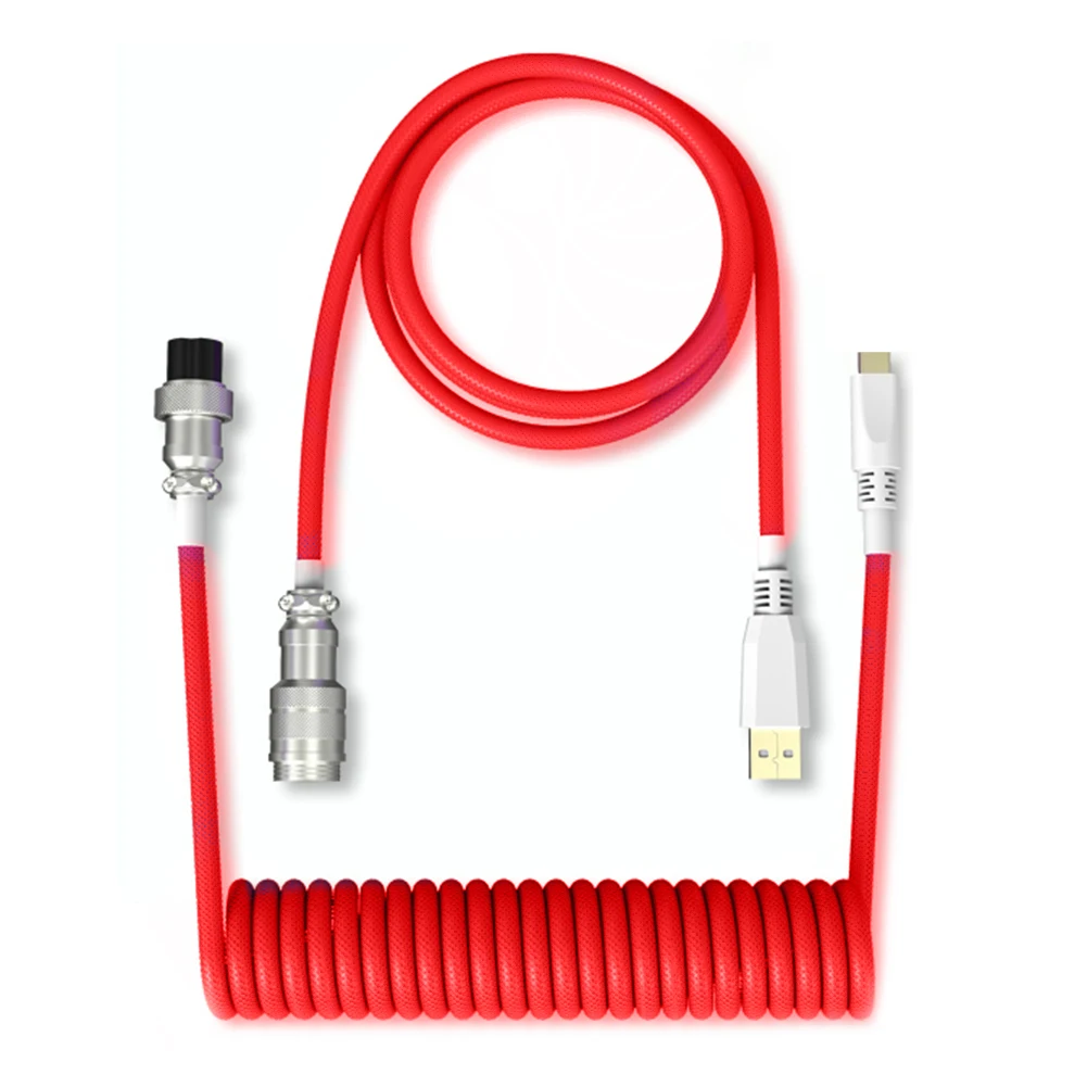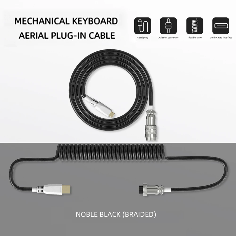Comprar Cable USB tipo C enrollado para teclado mecánico, Conector de aviador, Paracord en espiral con manga, Cable de aviador de teclado mecánico
