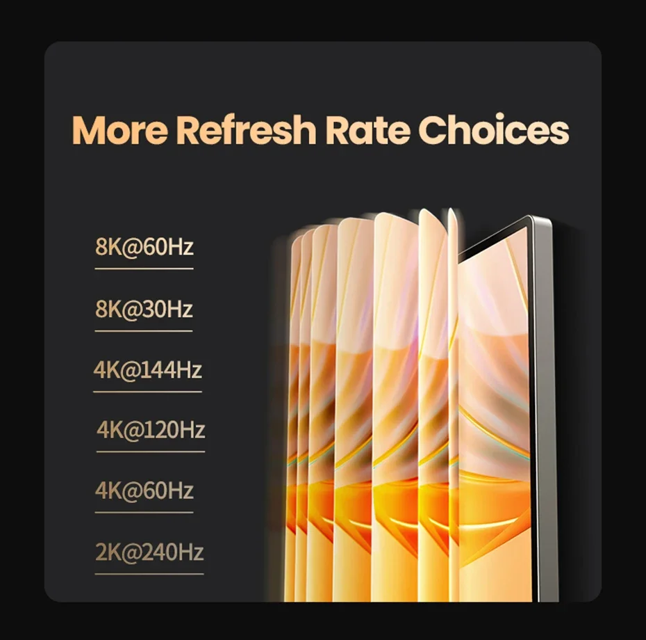 Resolution : 8K @ 60Hz / 4K @ 120Hz / 2K @ 165Hz