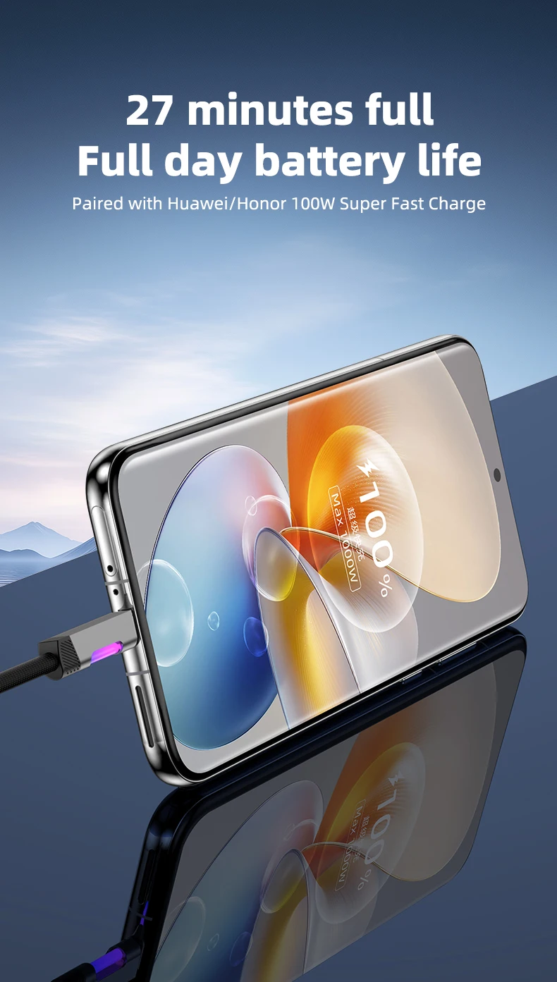 Cable USB tipo C con luz RGB, Cable de sincronización de datos de carga rápida PD de 100W para iPhone 16 pro, Huawei, Xiaomi, Realme, Samsung