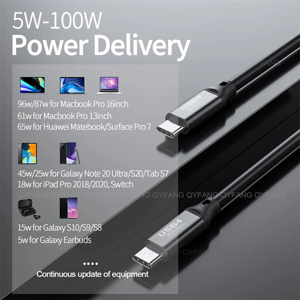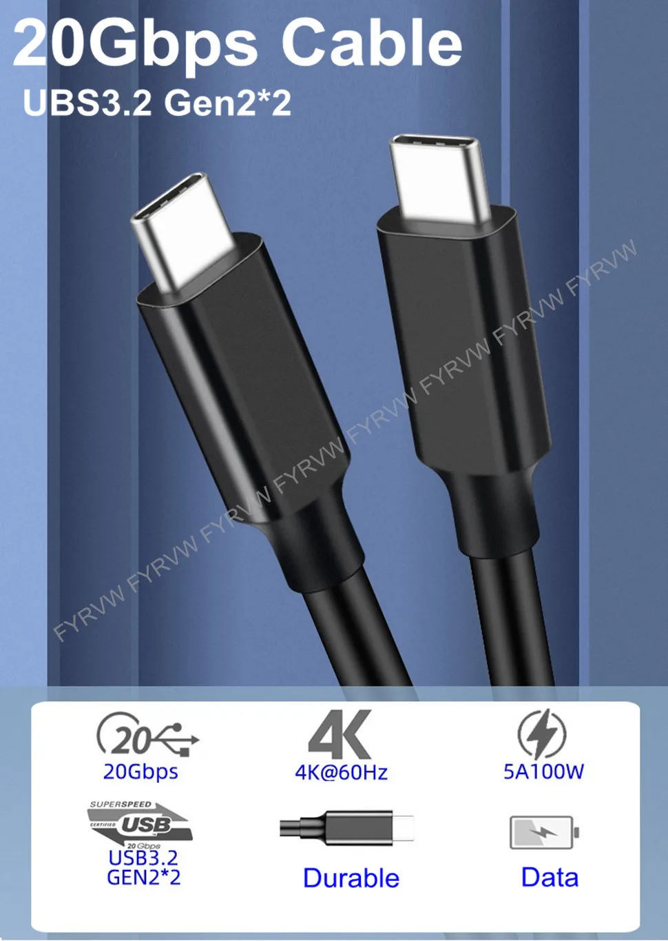 3: USB C a USB-C Cable de 20Gbps USB 4 Gen2 tipo C 100W de carga rápida 5A entrega de potencia 4K @ 60Hz Video Compatible para Oculus Xiaomi etc.