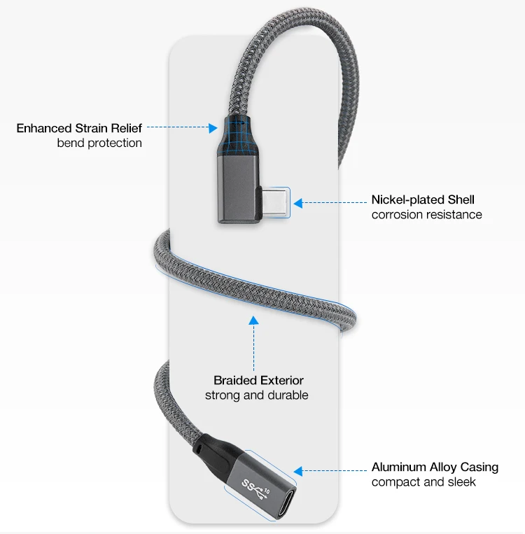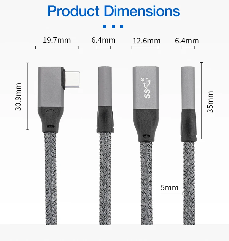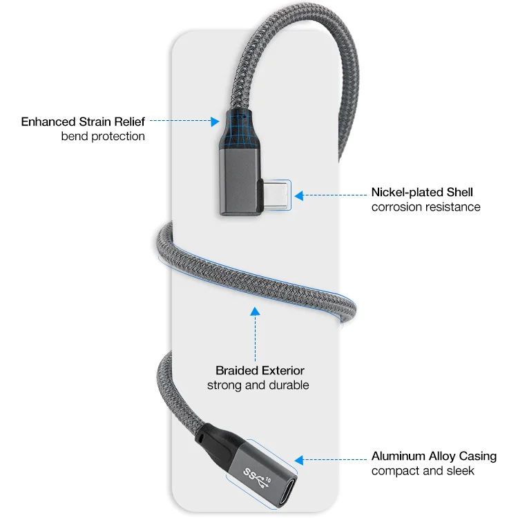Cable de extensión USB C de ángulo recto, 90 grados Gen 2 10 Gbps USB-C 3.1 Cable de vídeo 4K macho a hembra, extensor tipo C en forma de L, para MacBook Pro/Air, iPad Pro 2020, Nintendo Switch, DJI Mavic
