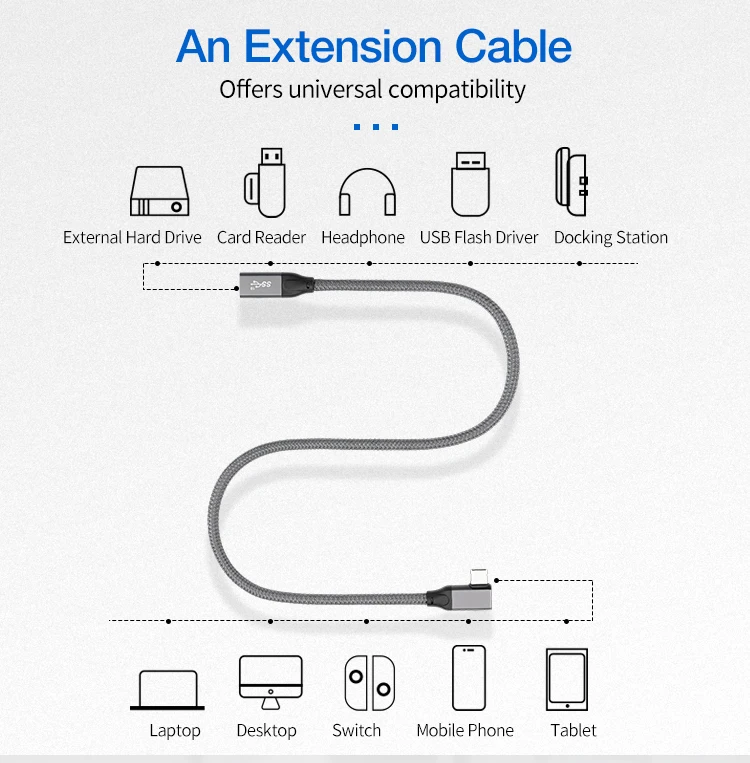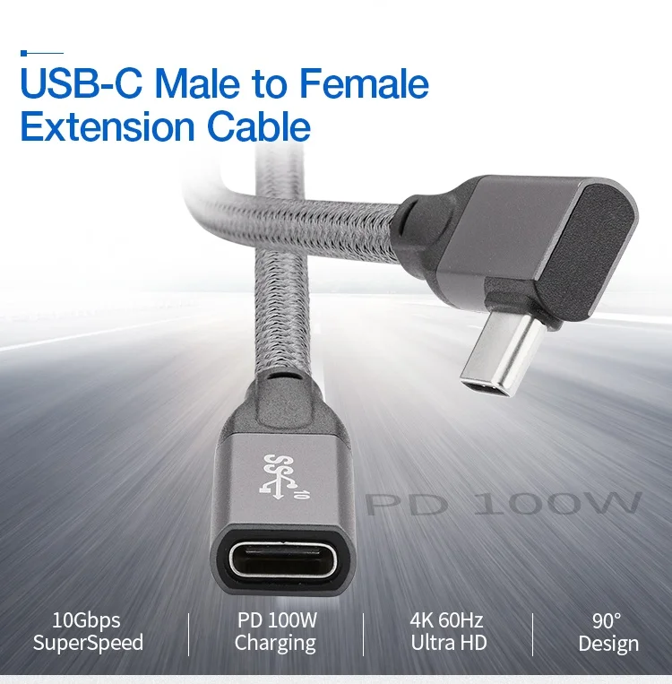 Comprar Cable USB tipo C macho a hembra con codo de 90 grados 5A 4K 10Gbps 100W PD Cable de carga rápida para MacBook tipo C