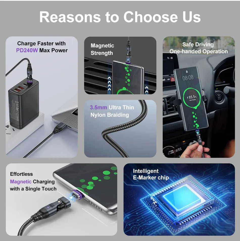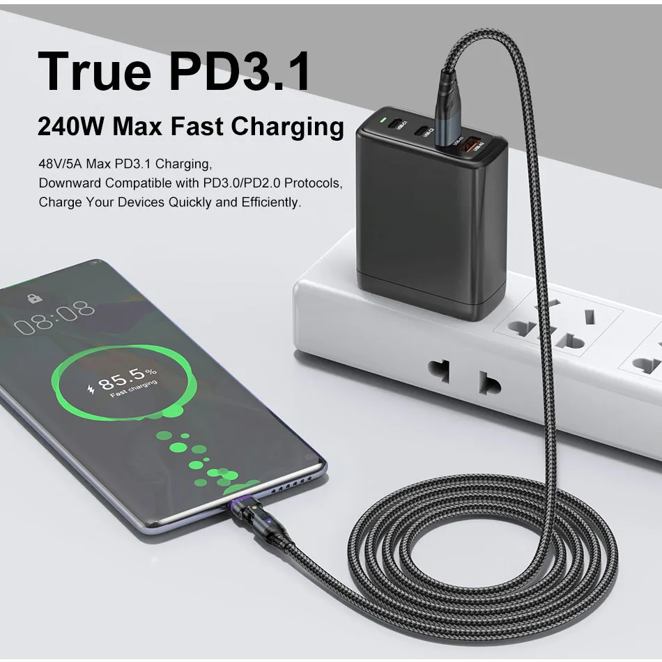 Cable USB tipo C magnético de 240W, Cable Micro tipo C de carga rápida 5A para Macbook, Samsung, Xiaomi, iPhone, Cable cargador magnético