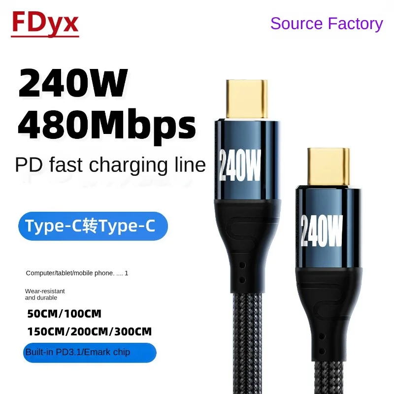 Cable USB tipo C para ordenador portátil, Cable de transferencia de datos PD de 240W a USB-C, carga rápida 2,0, 48V, 5A, QC4.0, 0,5 M, 1M, 1,5 M, 2M, 3M