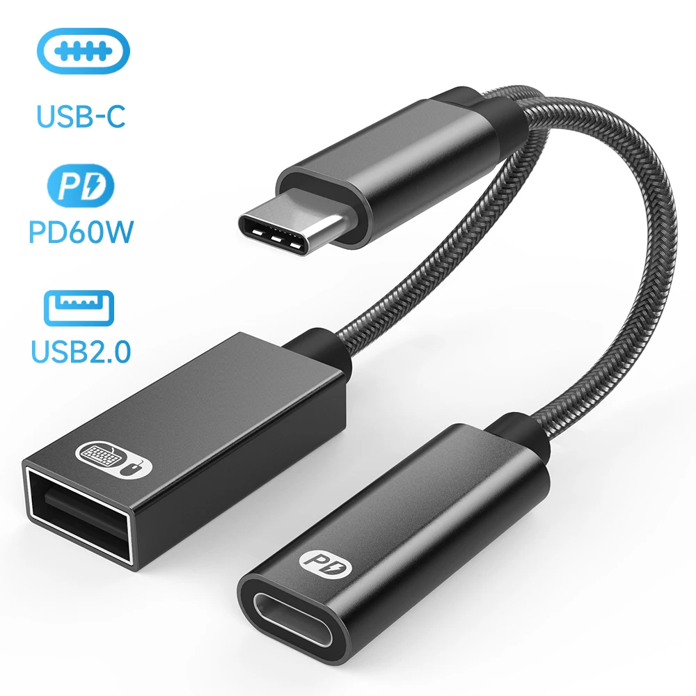 Comprar Cable USB tipo C OTG 2 en 1, puerto de carga macho a USB C hembra, PD 3,0, adaptador divisor de teléfono para Samsung, Ipad Pro, Google
