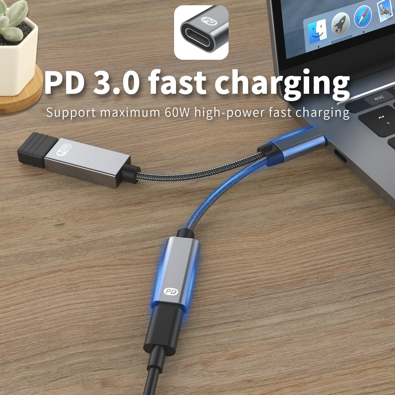 3. Carga tu teléfono hasta 60W PD mientras transfieres datos y conectas múltiples periféricos de pequeña potencia. Tiene una velocidad confiable para los teléfonos tipo C de carga más recientes de la última, SOLO ADMITE HASTA 60W