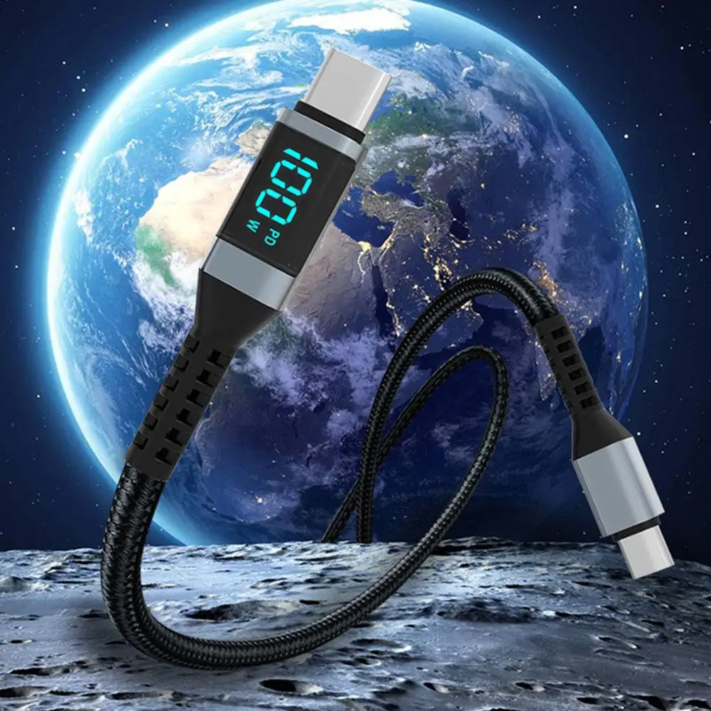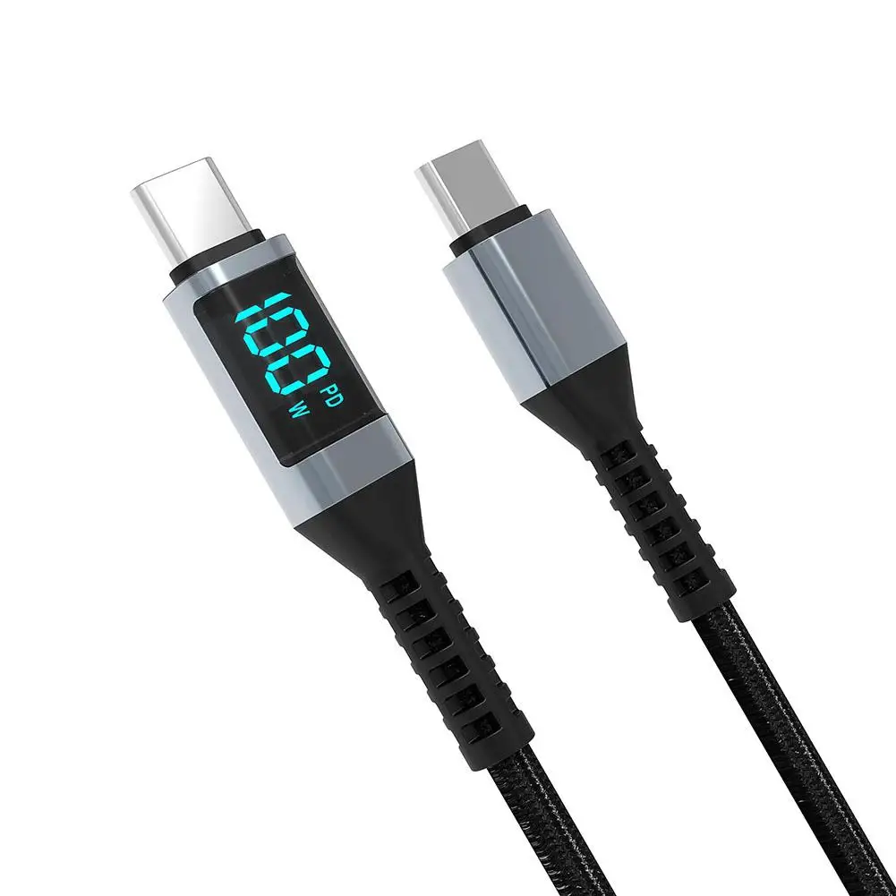 Comprar Cable USB tipo C con pantalla LED, cargador de carga rápida 5A, marcador electrónico, 2m, 100W, 15 para IPhone, IPad, PD