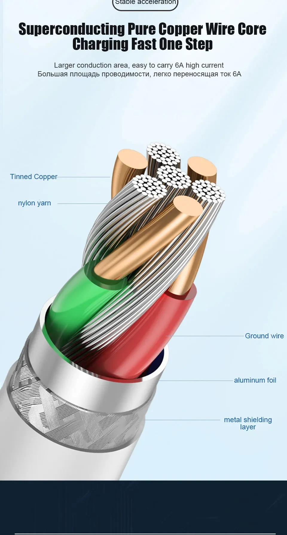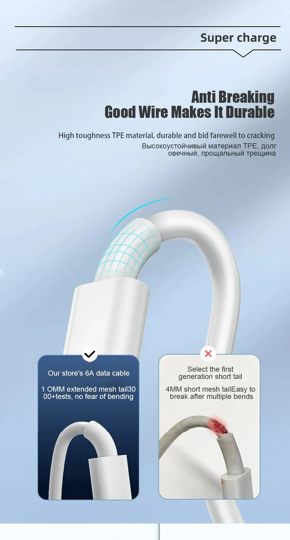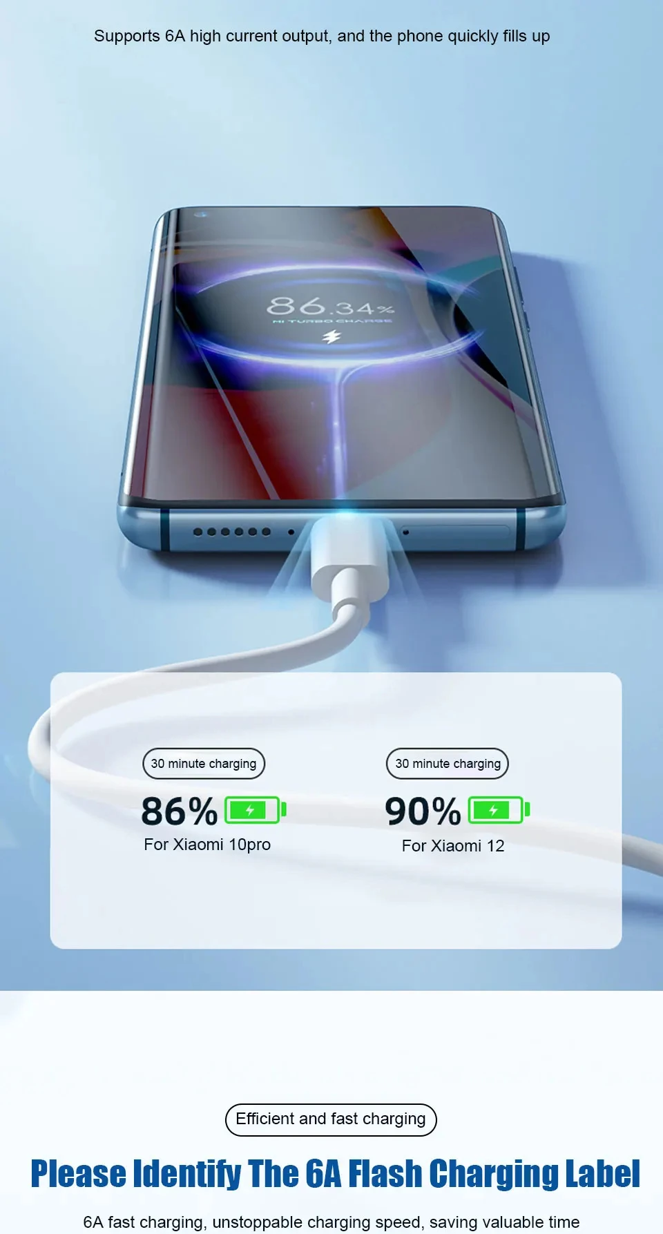 Cable USB tipo C PD 120W 6A para For Xiaomi Mi 15 14 13 Ultra Pro, Cable de datos de carga rápida para For Redmi Note 14 13, accesorios de cargador Poco
