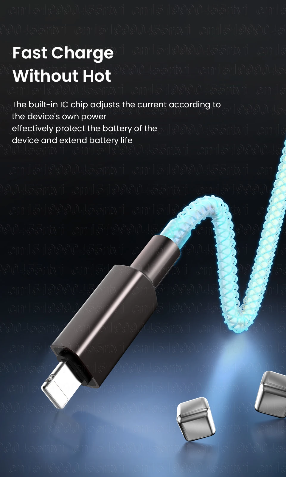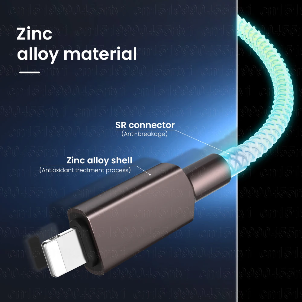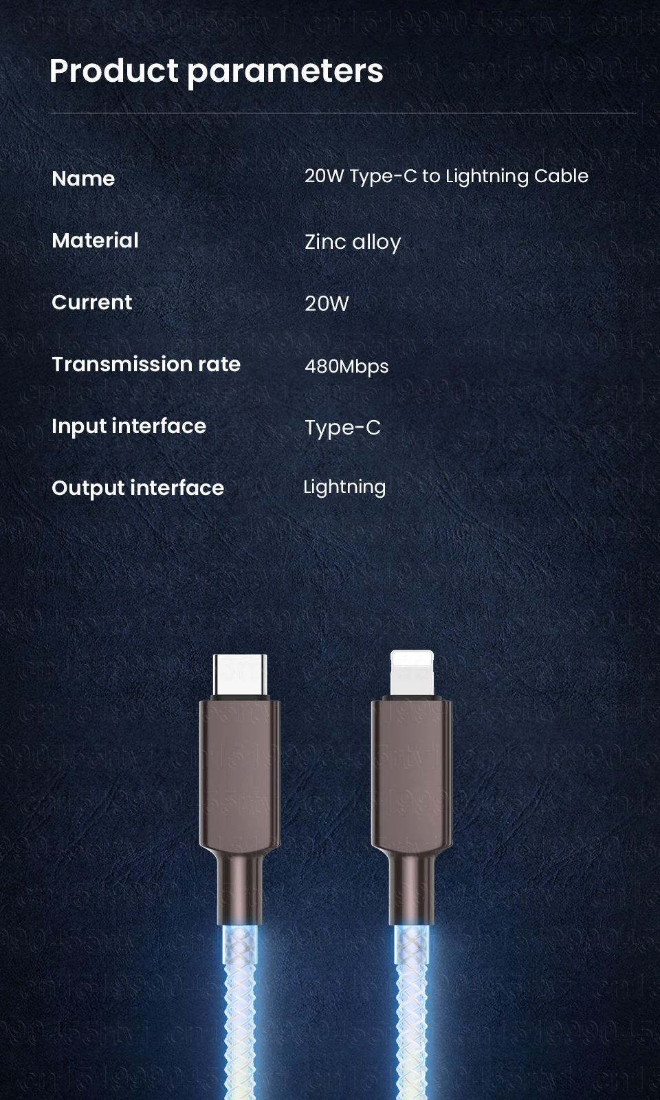 6. Hay una gruesa fibra emisora de luz de cuerpo entero en el cuerpo del cable, que garantiza el brillo y al mismo tiempo mejora la resistencia a la flexión del cable de datos, Y no es fácil dañarse después de un uso a largo plazo