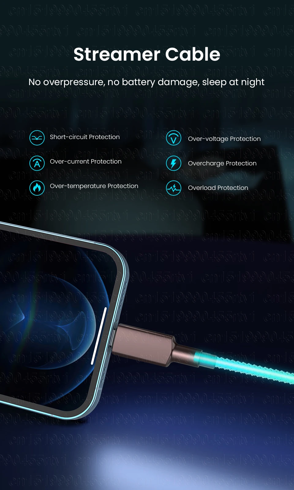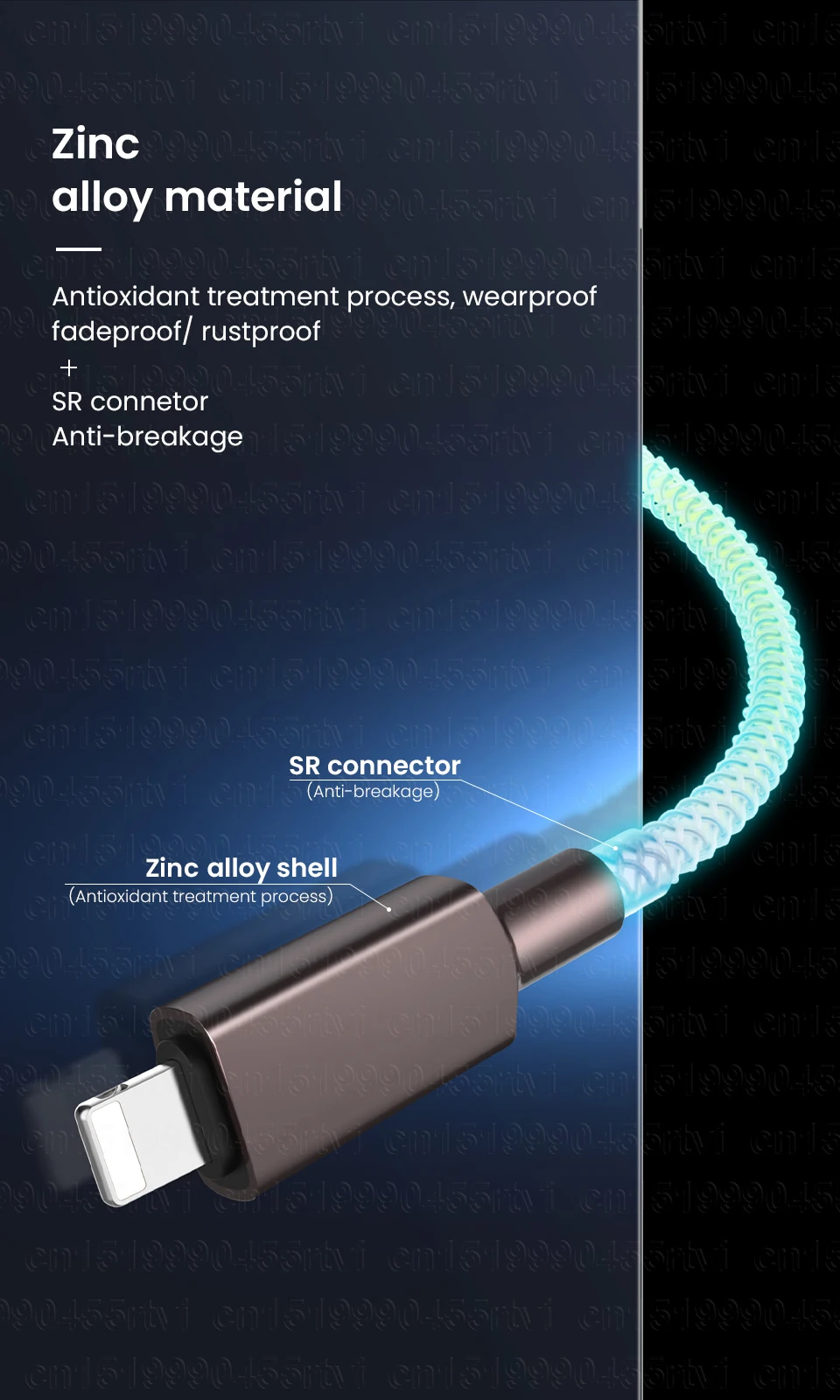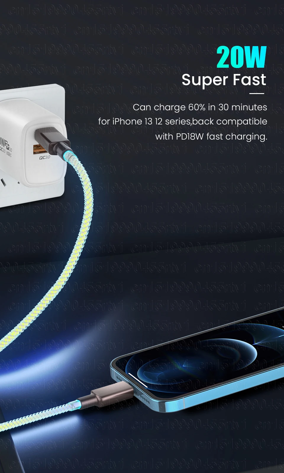 6. Hay una gruesa fibra emisora de luz de cuerpo entero en el cuerpo del cable, que garantiza el brillo y al mismo tiempo mejora la resistencia a la flexión del cable de datos, Y no es fácil dañarse después de un uso a largo plazo