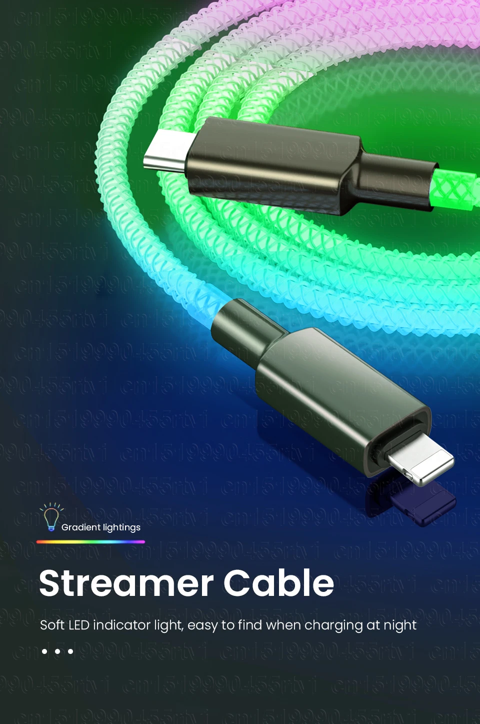 3. A diferencia del antiguo cable de datos streamer en la industria, su atenuación luminosa es severa y la luminosa es desigual. Nuestro cable de datos RGB es luminoso de cuerpo completo, uniformemente luminoso, de alto brillo y sigue siendo hermoso bajo las luces fluorescentes de interior.