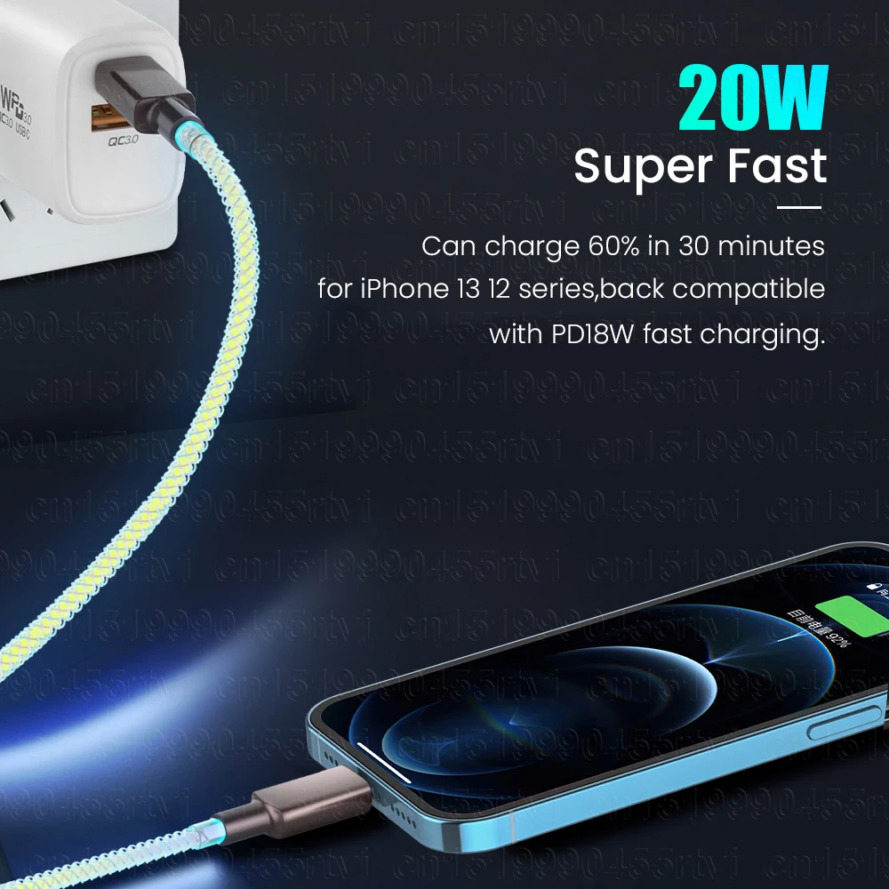 Cable USB PD de 20W tipo C para iPhone 13 12 11 Pro Max X XS 8, cargador de carga rápida para MacBook, iPad Pro, cable de datos USBC