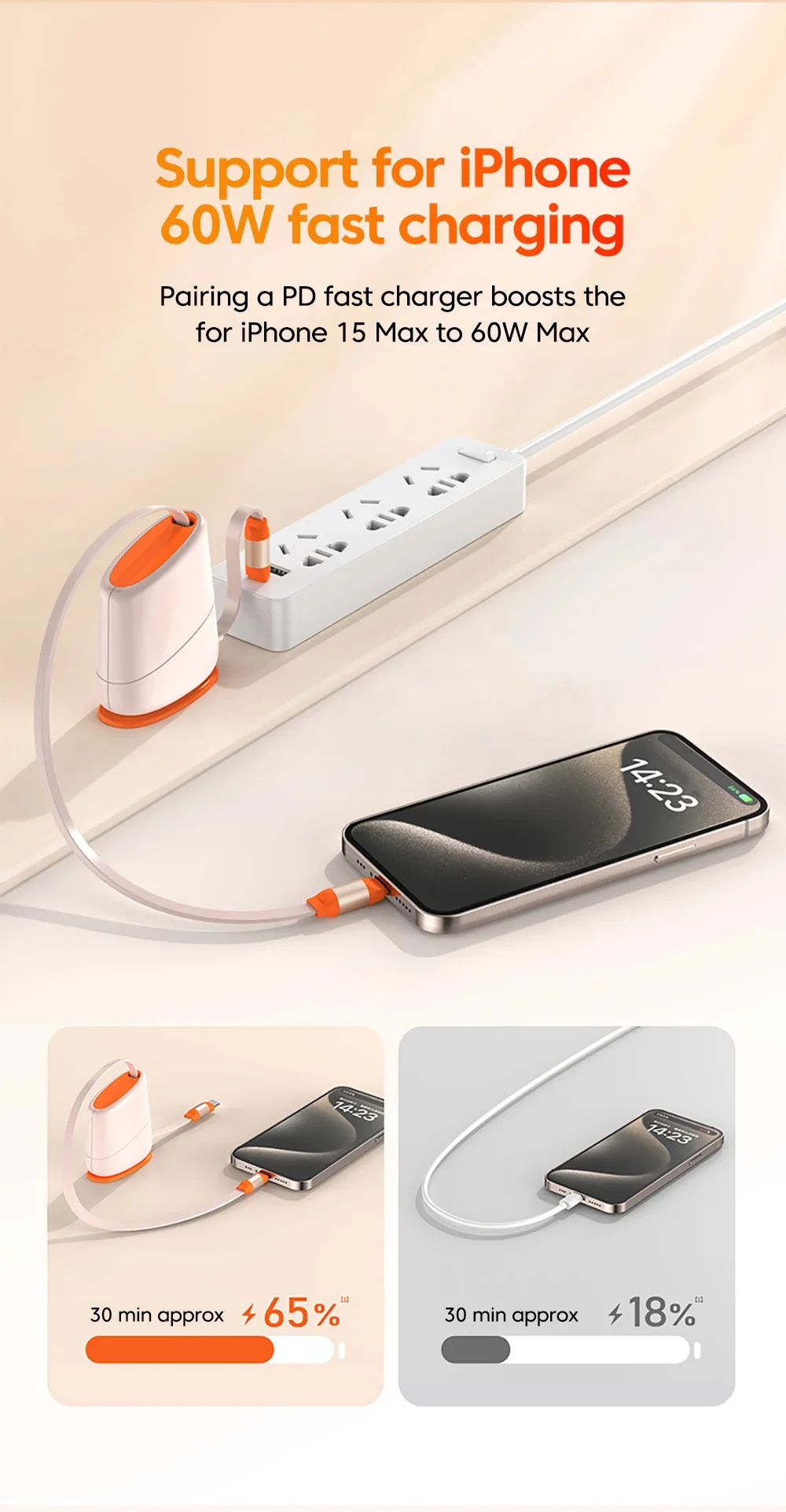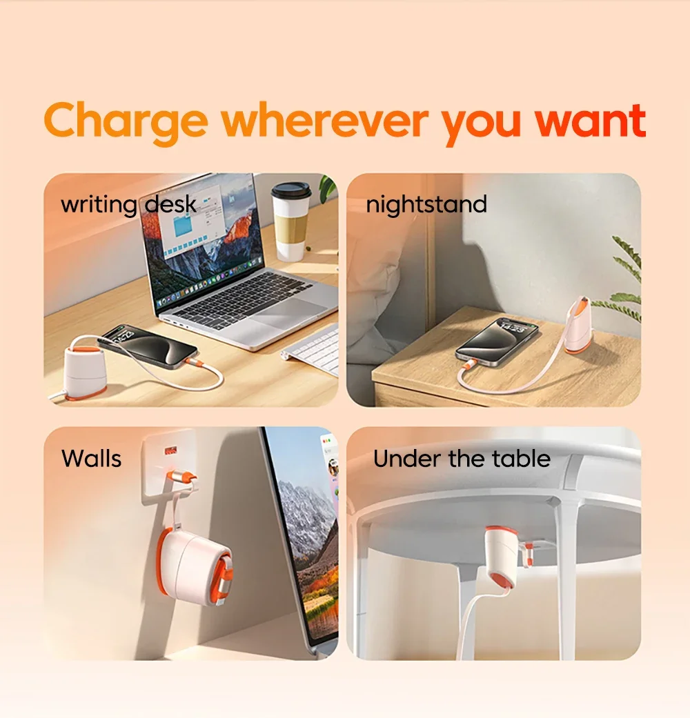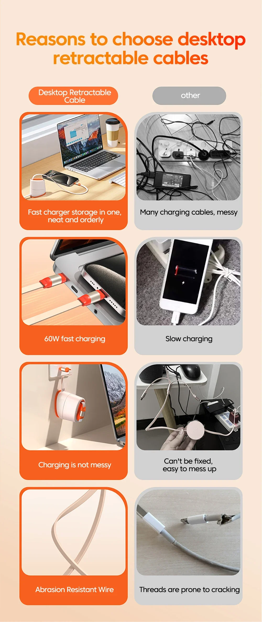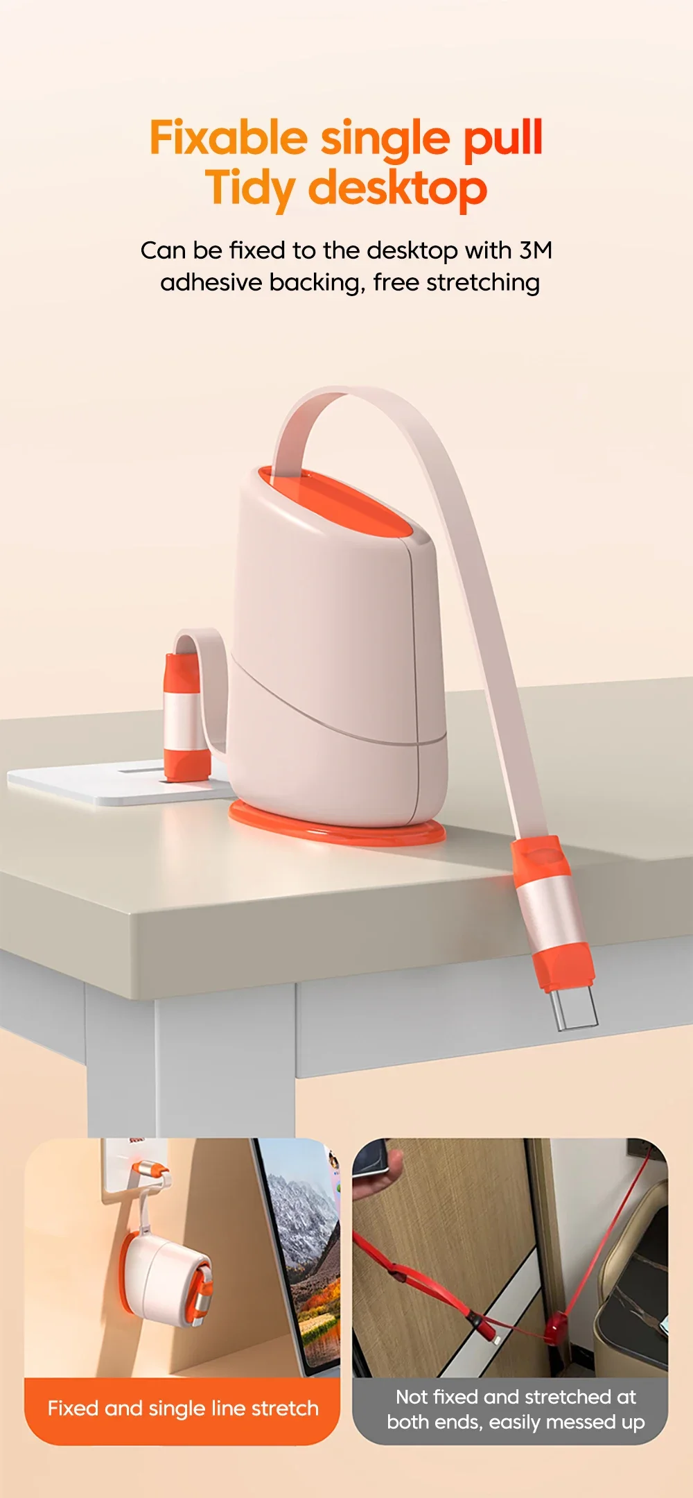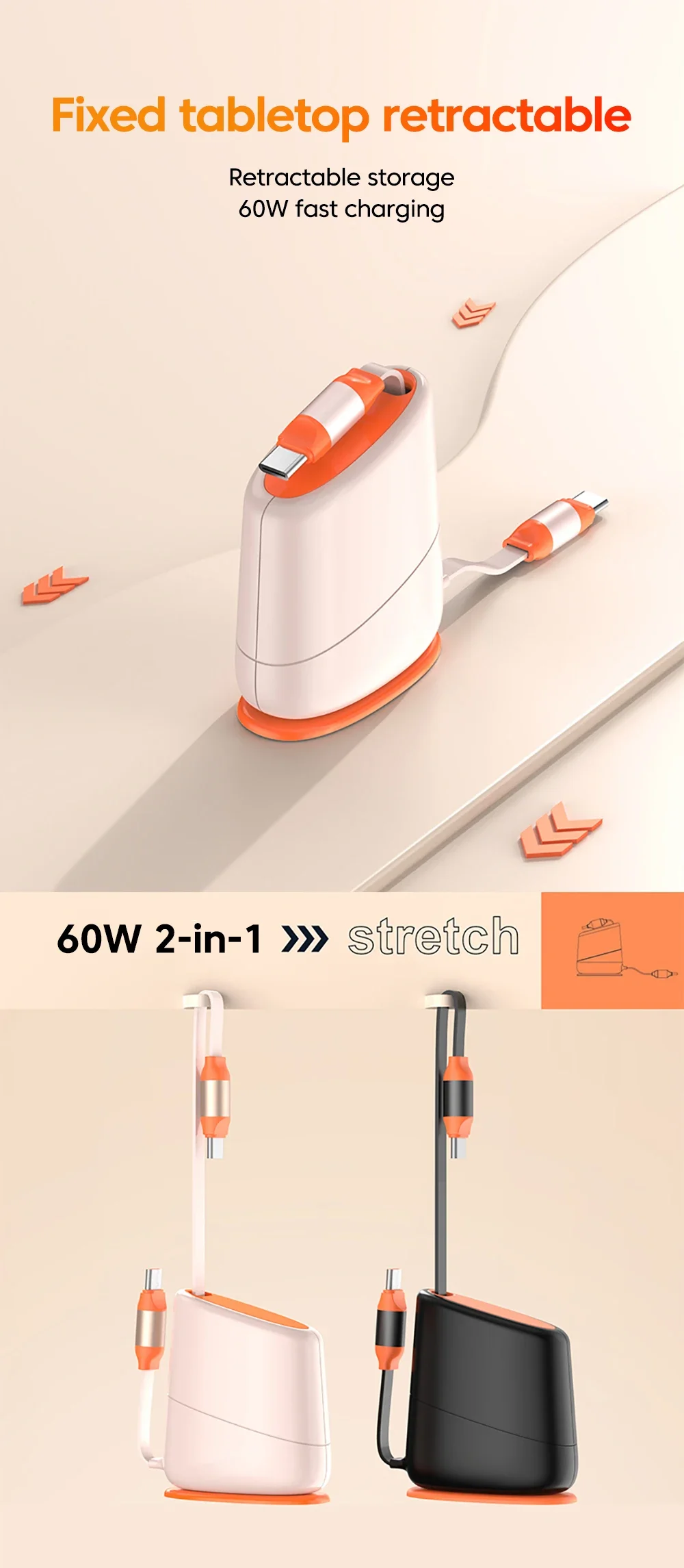 Comprar Cable USB tipo C retráctil de escritorio PD60W Cable tipo C de carga rápida para iphone 16 15 Android Samsung Laptop Tablet Cable USB C