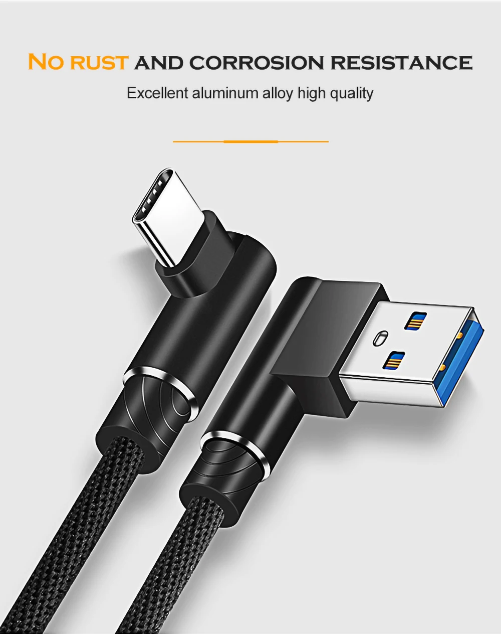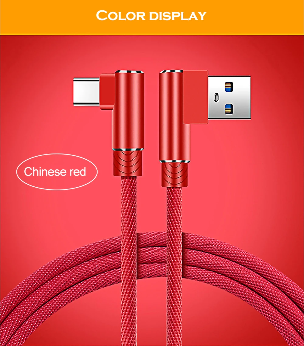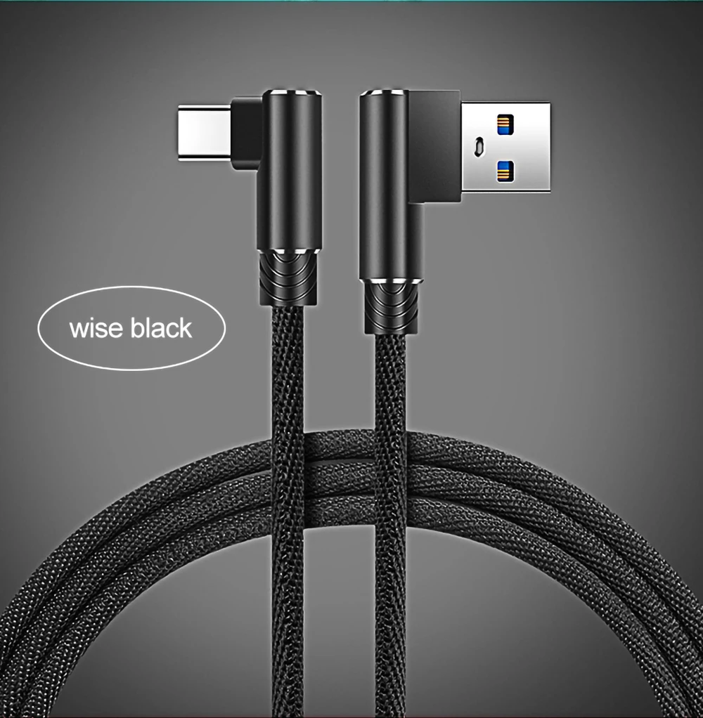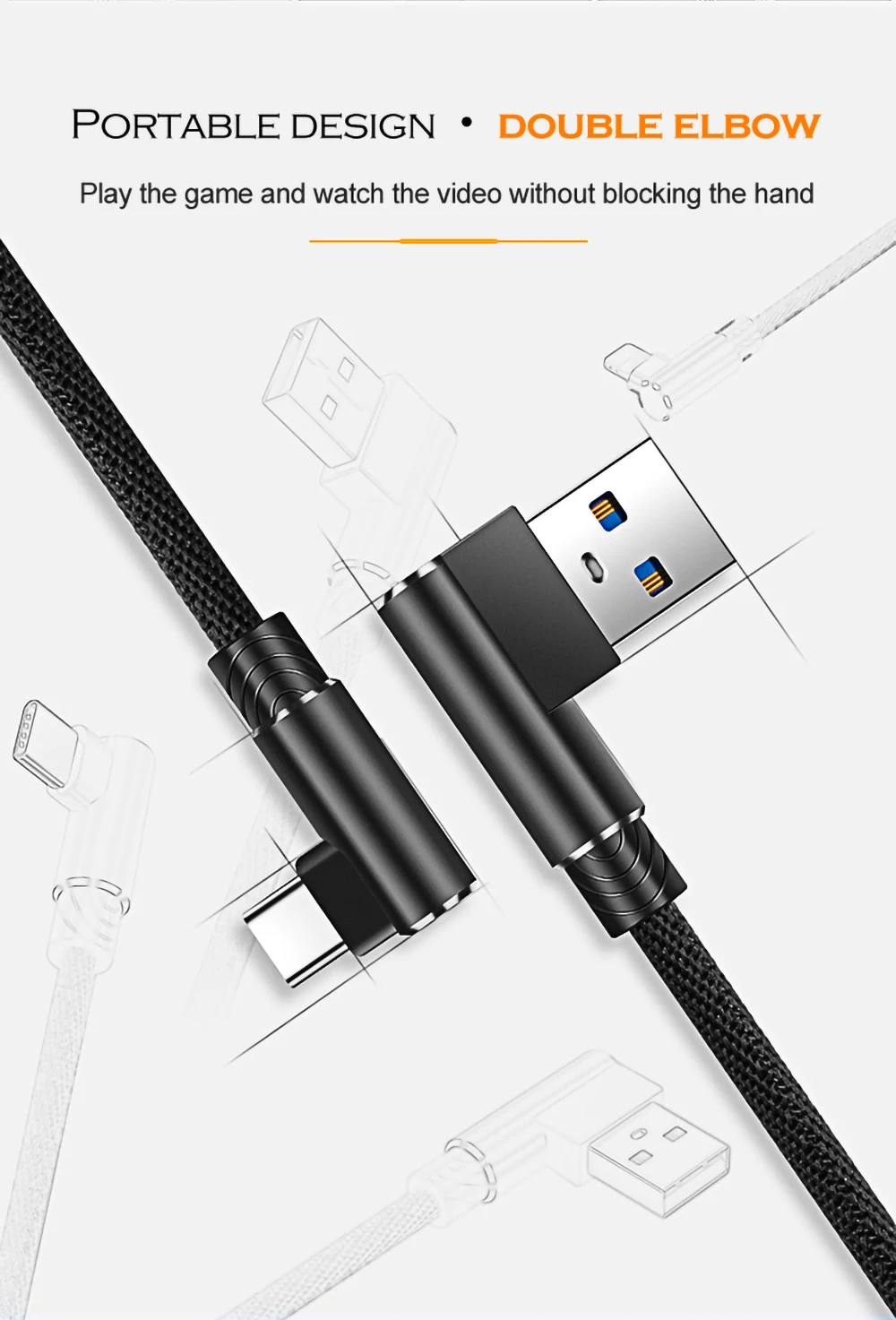 Tipo C Cable USB de 90 grados Cable de carga para Samsung S9 S10 S8 2A rápido Cable de datos del cargador para Xiaomi mi 9 Huawei P30 P20 Mate20