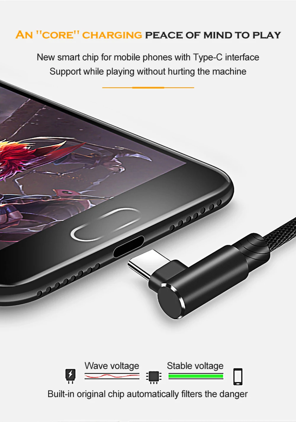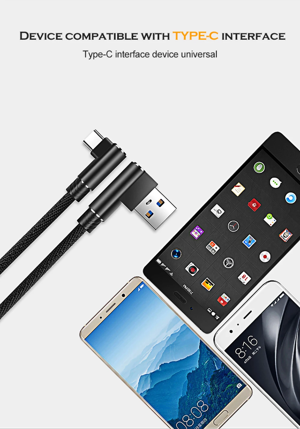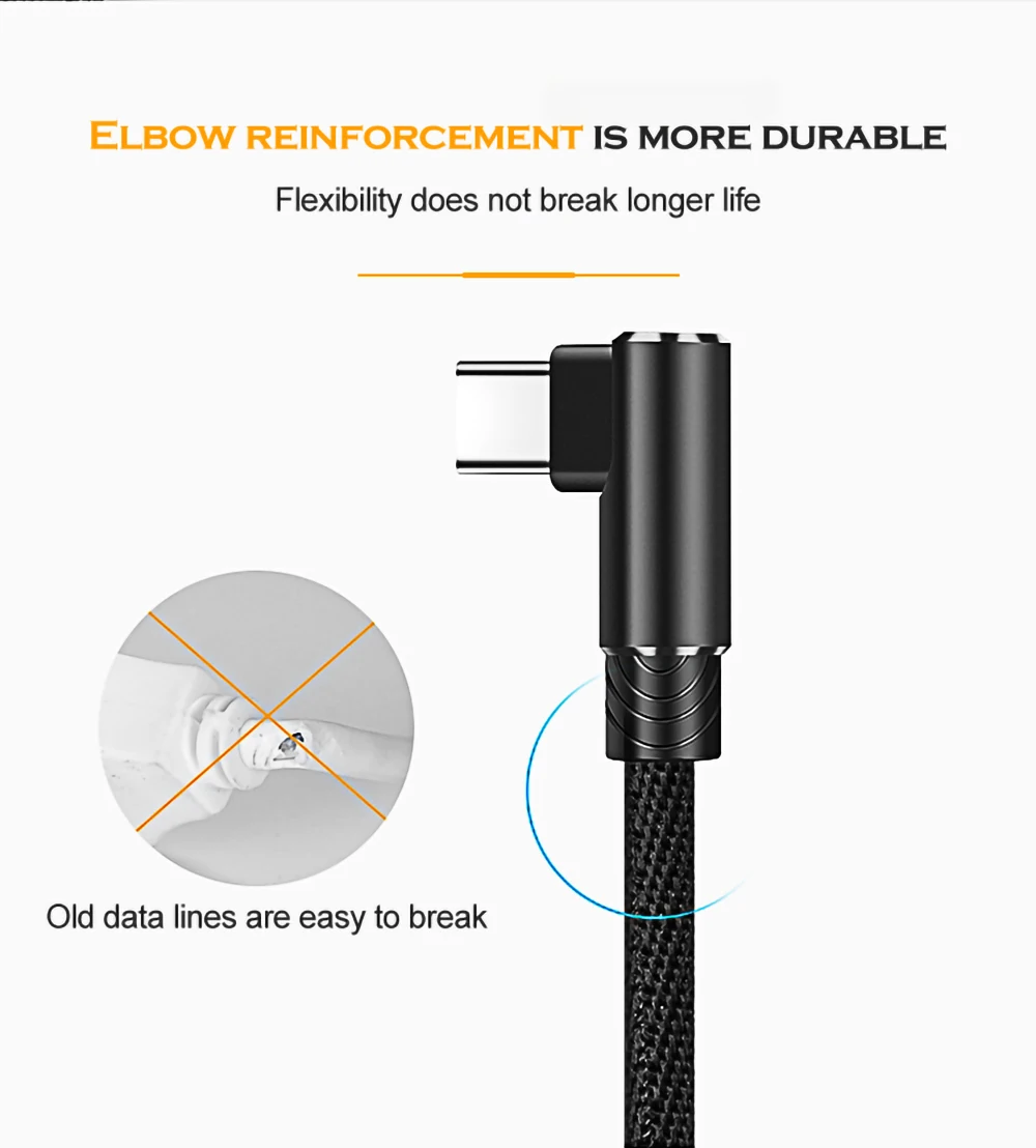 Tipo C Cable USB de 90 grados Cable de carga para Samsung S9 S10 S8 2A rápido Cable de datos del cargador para Xiaomi mi 9 Huawei P30 P20 Mate20