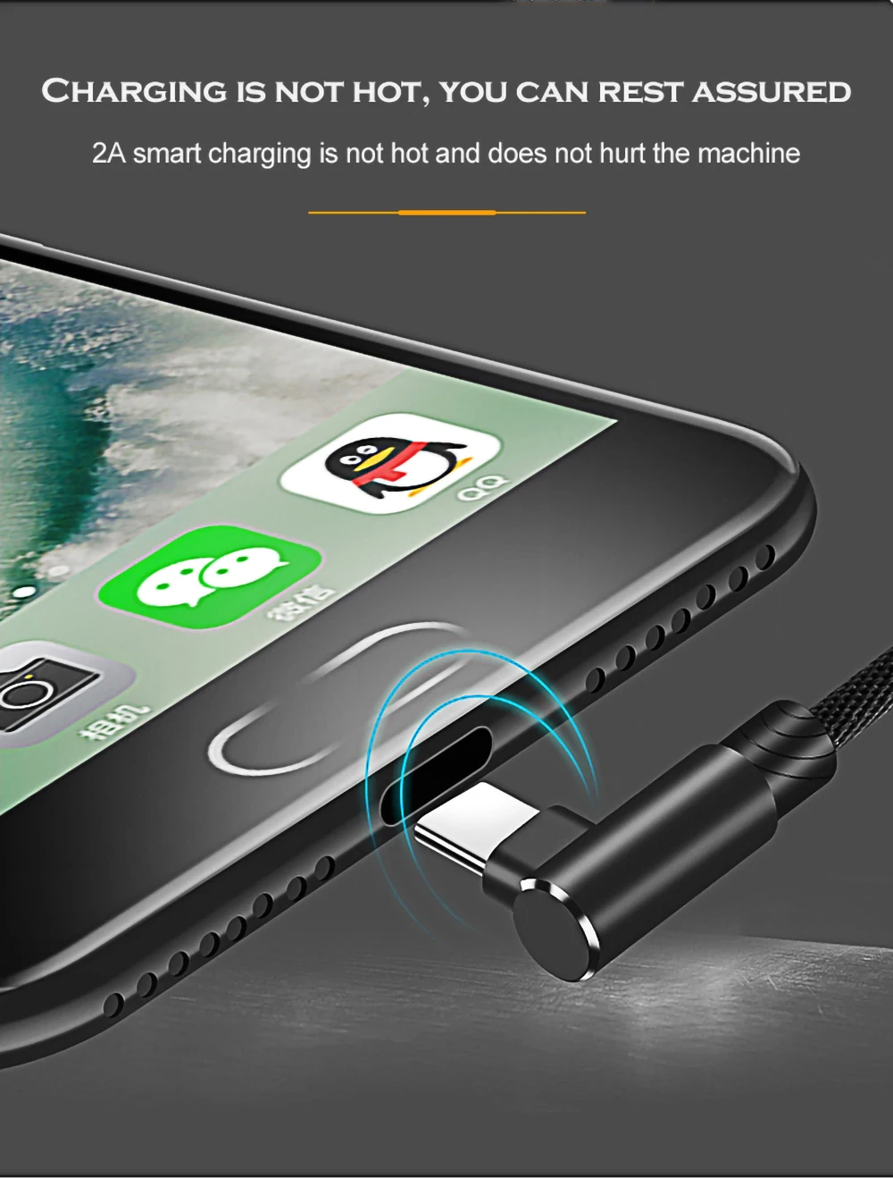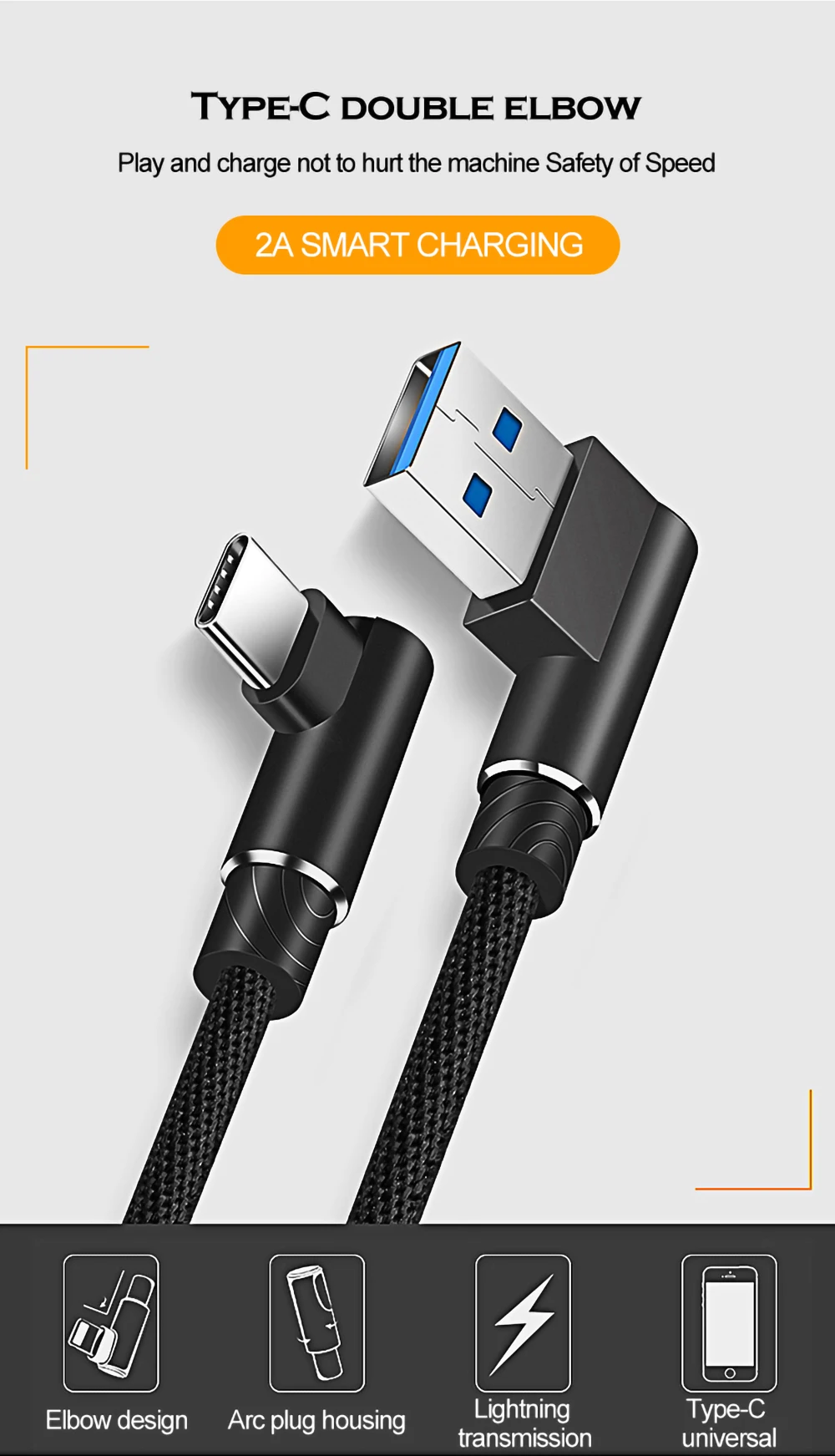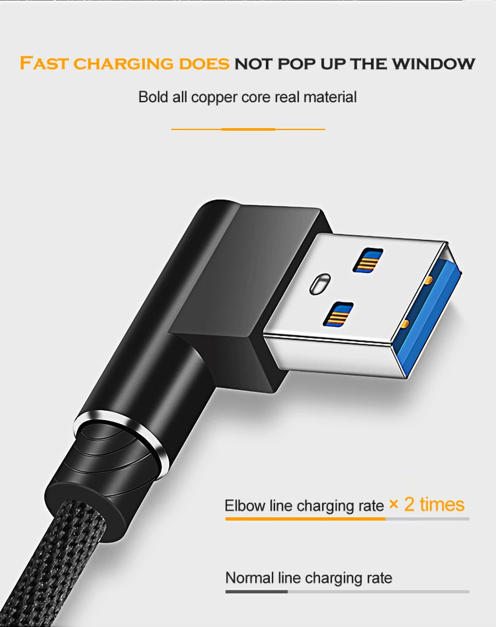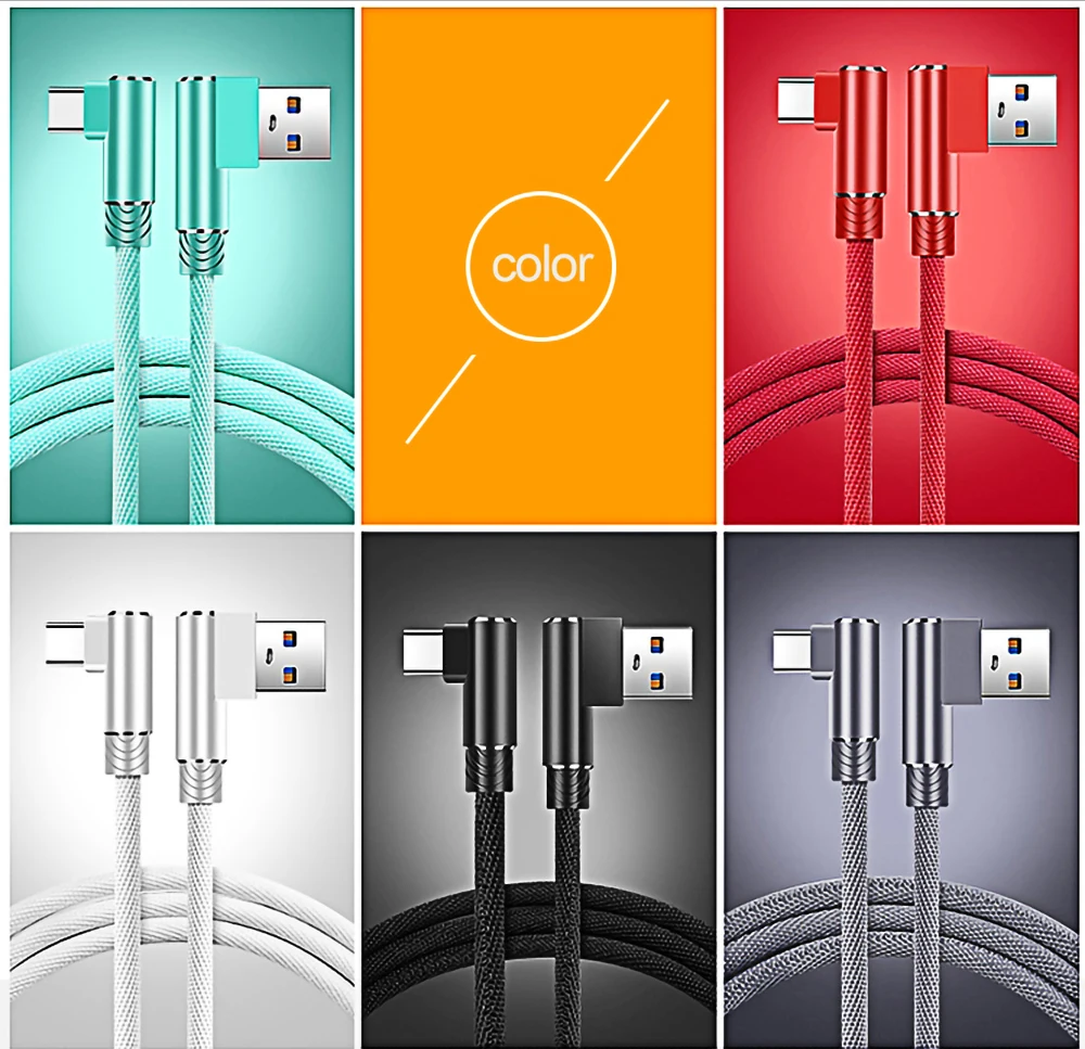 Tipo C Cable USB de 90 grados Cable de carga para Samsung S9 S10 S8 2A rápido Cable de datos del cargador para Xiaomi mi 9 Huawei P30 P20 Mate20