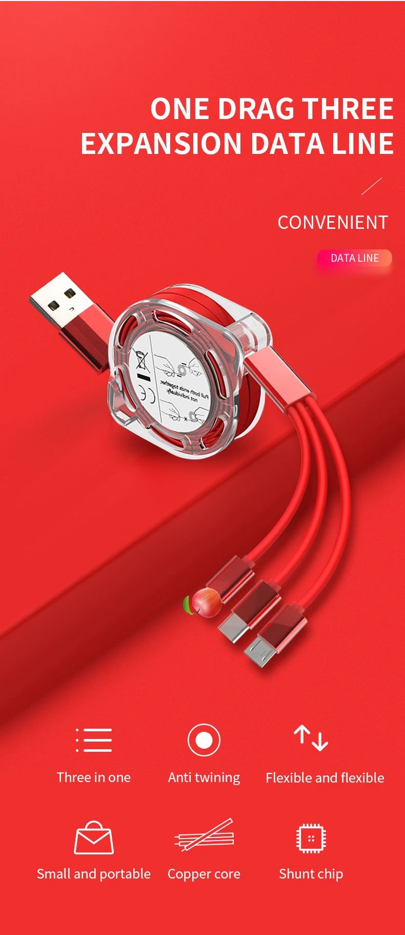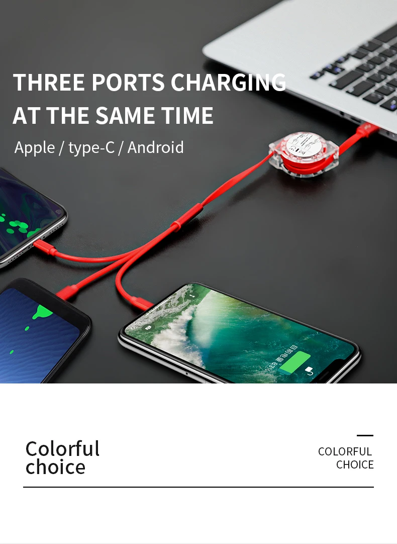 Comprar Cable USB tipo C telescópico 3 en 1, accesorios de teléfono para Xiaomi, Huawei, cargador de carga rápida, Micro Cable USB C