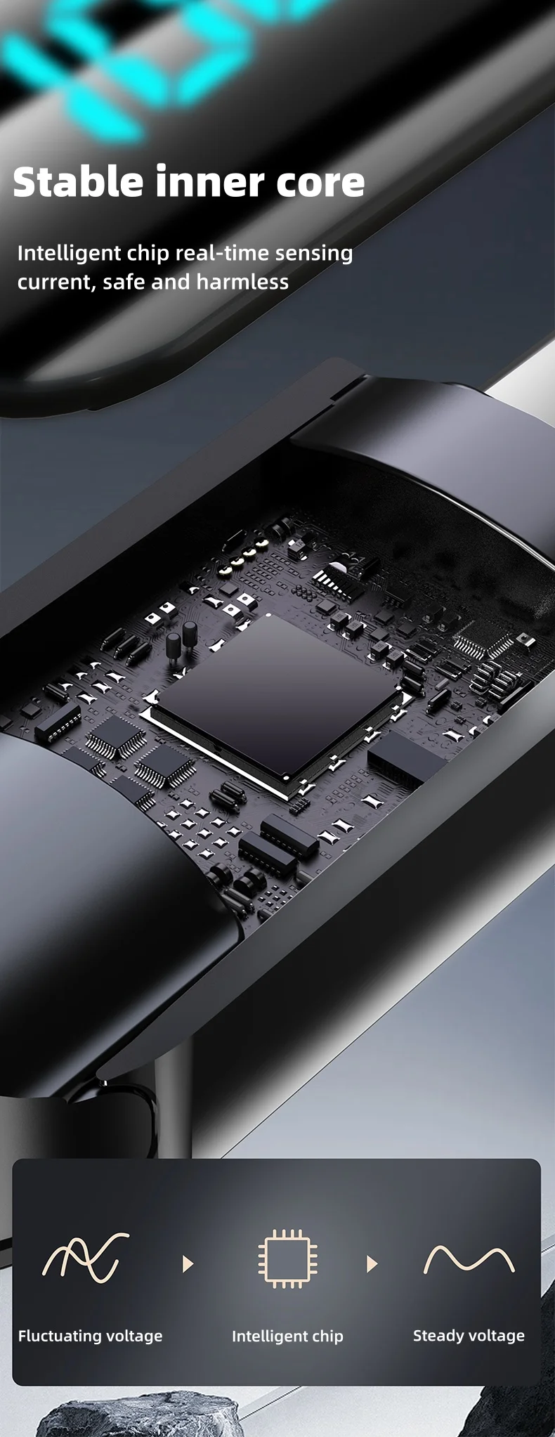 Núcleo interno estable.Chip inteligente de detección de corriente en tiempo real, seguro e inofensivo.