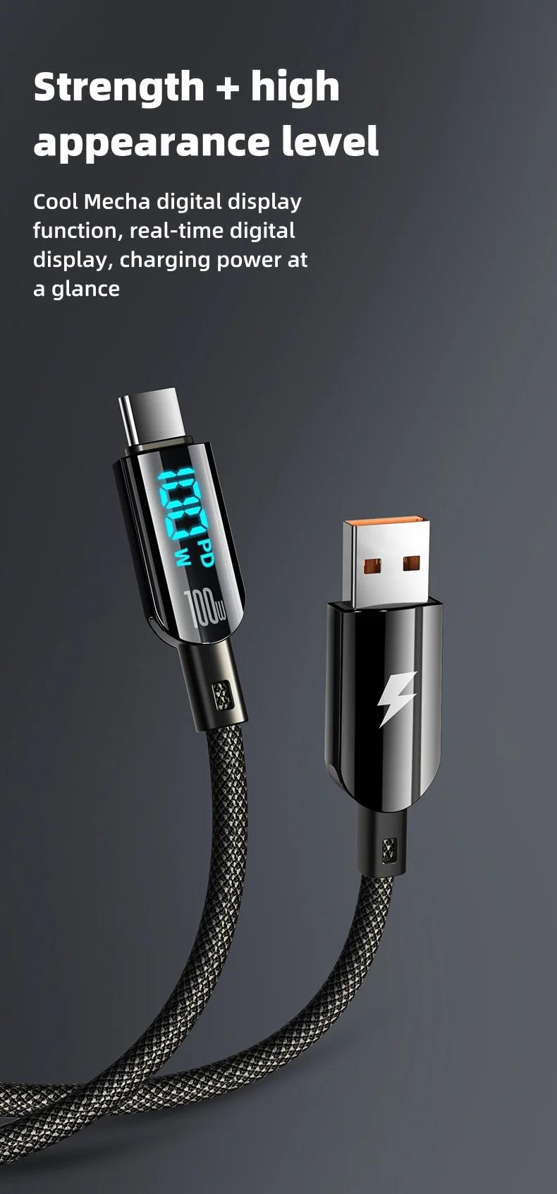 Función de pantalla digital inteligente.Genial Función de pantalla digital Mecha, le permite ver la velocidad de carga de un vistazo.