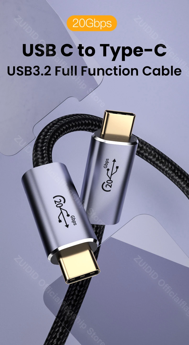 Cable USB tipo C a tipo C para Macbook PD 100W 5A USB 3.2 Gen2 20Gbps 8K 60Hz QC4.0 3,0 Cable USB-C para Samsung Xiaomi 2/3m
