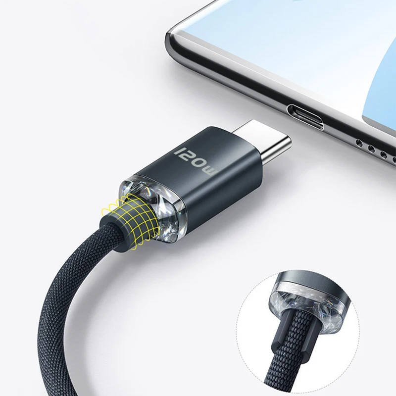 Cable USB tipo C trenzado de nailon 6A, Cable de datos USB C de carga súper rápida de 120W para Xiaomi Redmi Samsung Huawei Honor