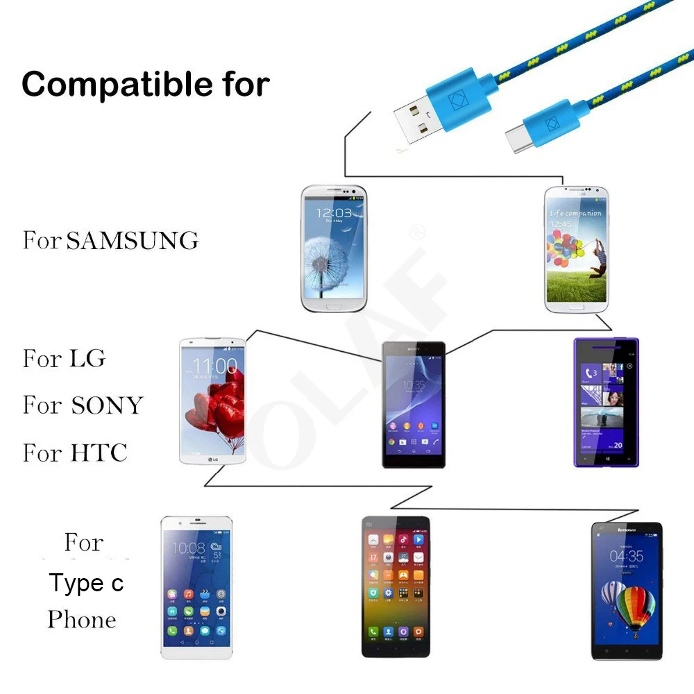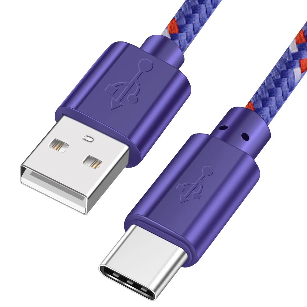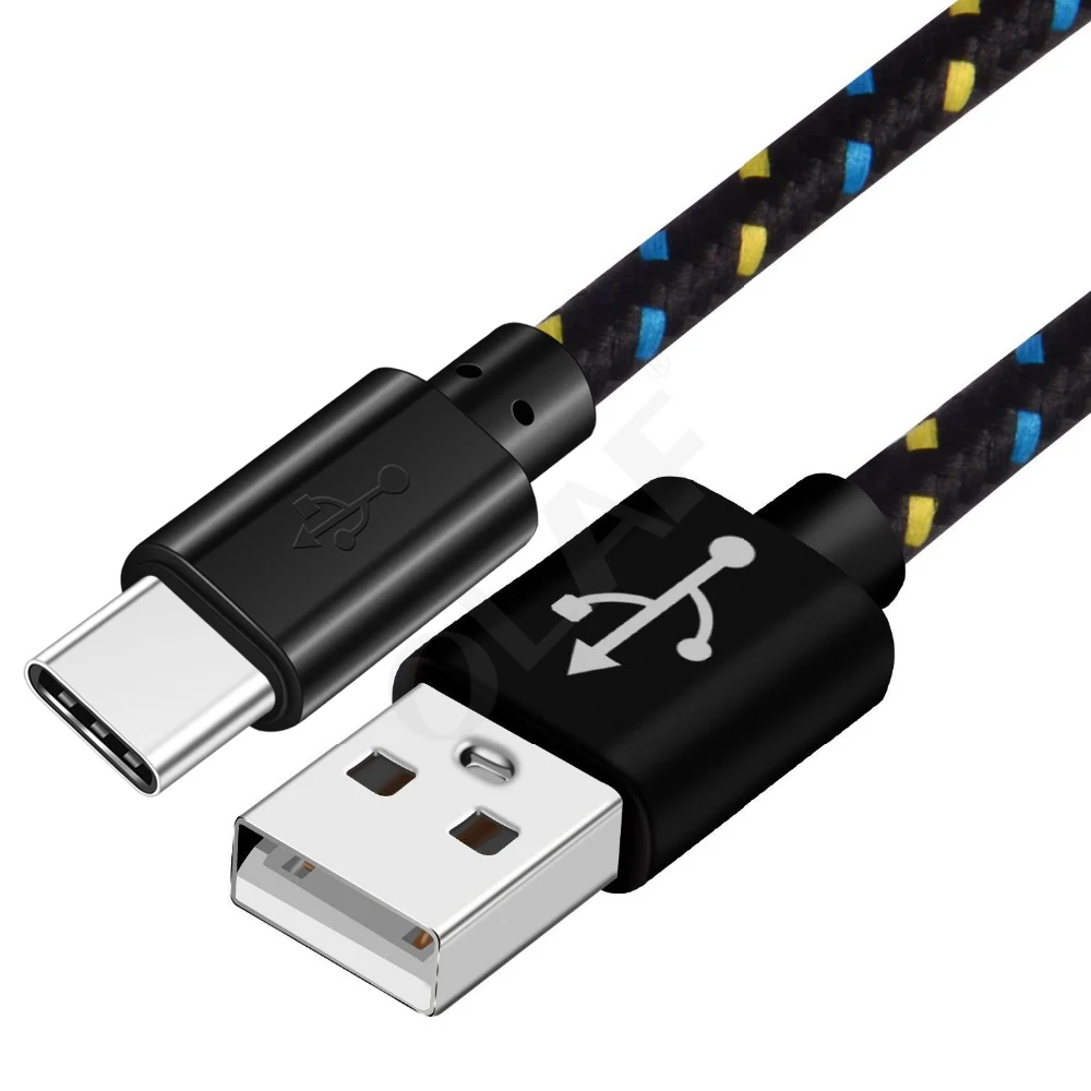 Cable USB tipo C trenzado de nailon OLAF, 1M, 2M, 3M, sincronización de datos, carga rápida, Cable USB C para Samsung S9 S10, Xiaomi mi9 mi8 Huawei tipo c