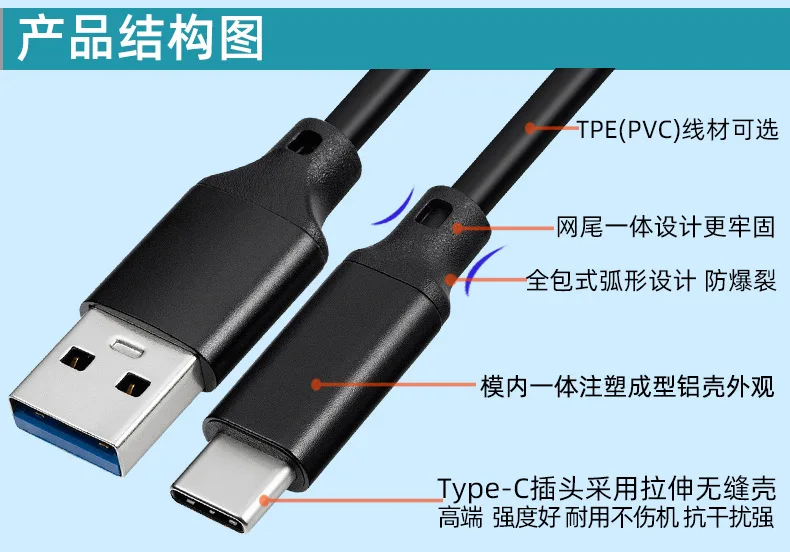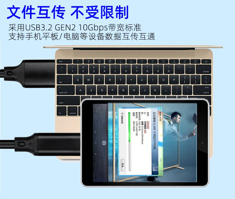 2. TRANSFERENCIA DE DATOS RÁPIDA-El cable es un cable USB 3,1 estándar, permite la transferencia de datos Superspeed + a una velocidad de hasta 5 GB/S.
