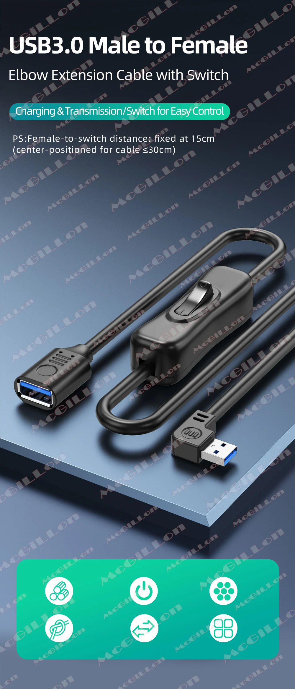 Cable USB3.0 con interruptor de encendido/apagado, palanca de extensión para lámpara USB, ventilador USB, línea de fuente de alimentación, adaptador duradero, auriculares USB LED