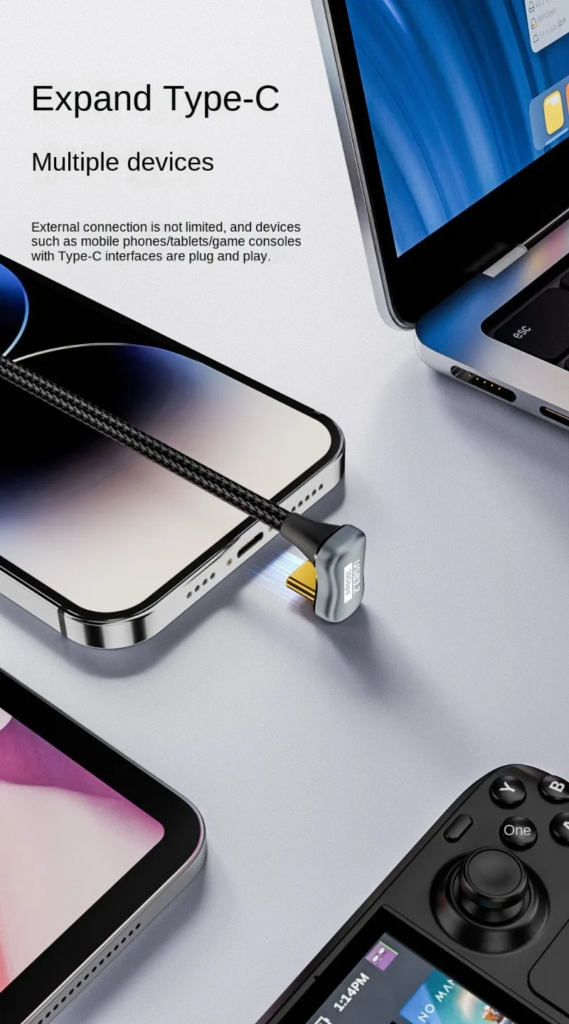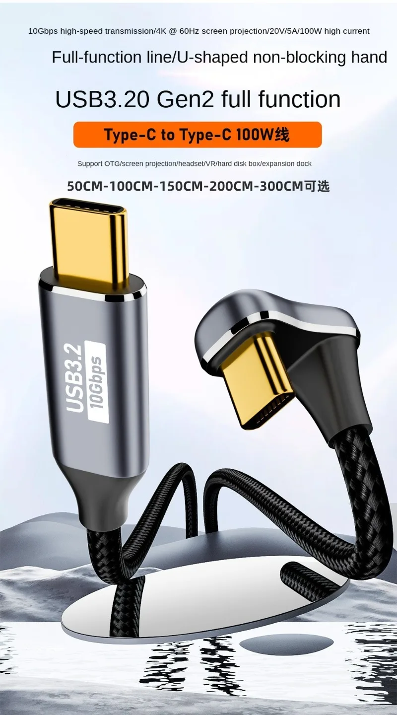 Cable USB3.1 en forma de U, 10Gbps, tipo C a tipo C, ThunderBolt 3, PD100W, 5A, USB-C, para iPhone 15 Pro Max, MacBook Pro, Samsung, Xiaomi