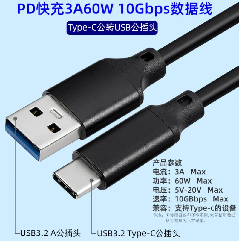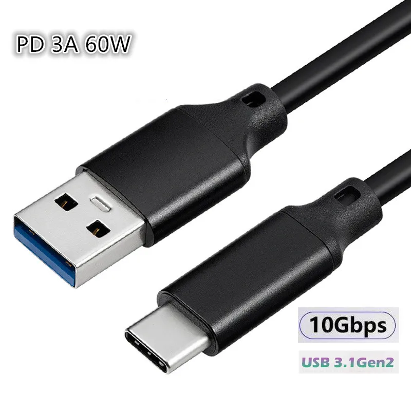 Comprar Cable USB3.2 de 10Gbps, cable de transferencia de datos USB A a tipo C tipo c para teléfono móvil, disco duro SSD 3A 60W QC 3,0, Cable de carga rápida