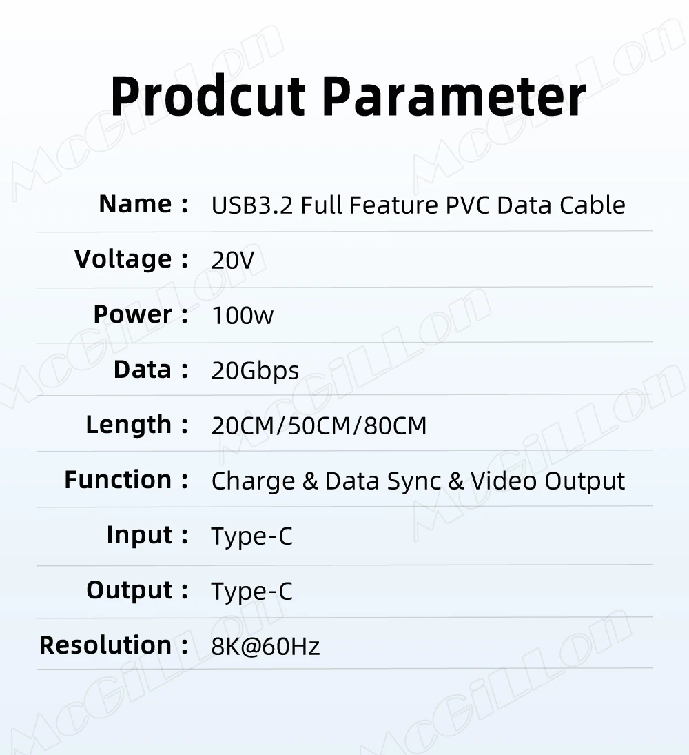 Comprar Cable USB3.2 USB C a tipo C PD100W 8K @ 60Hz 20G USBC para ThunderBolt3 TB3 Macbook iPad Samsung Google Pixel NS Switch Steam Deck